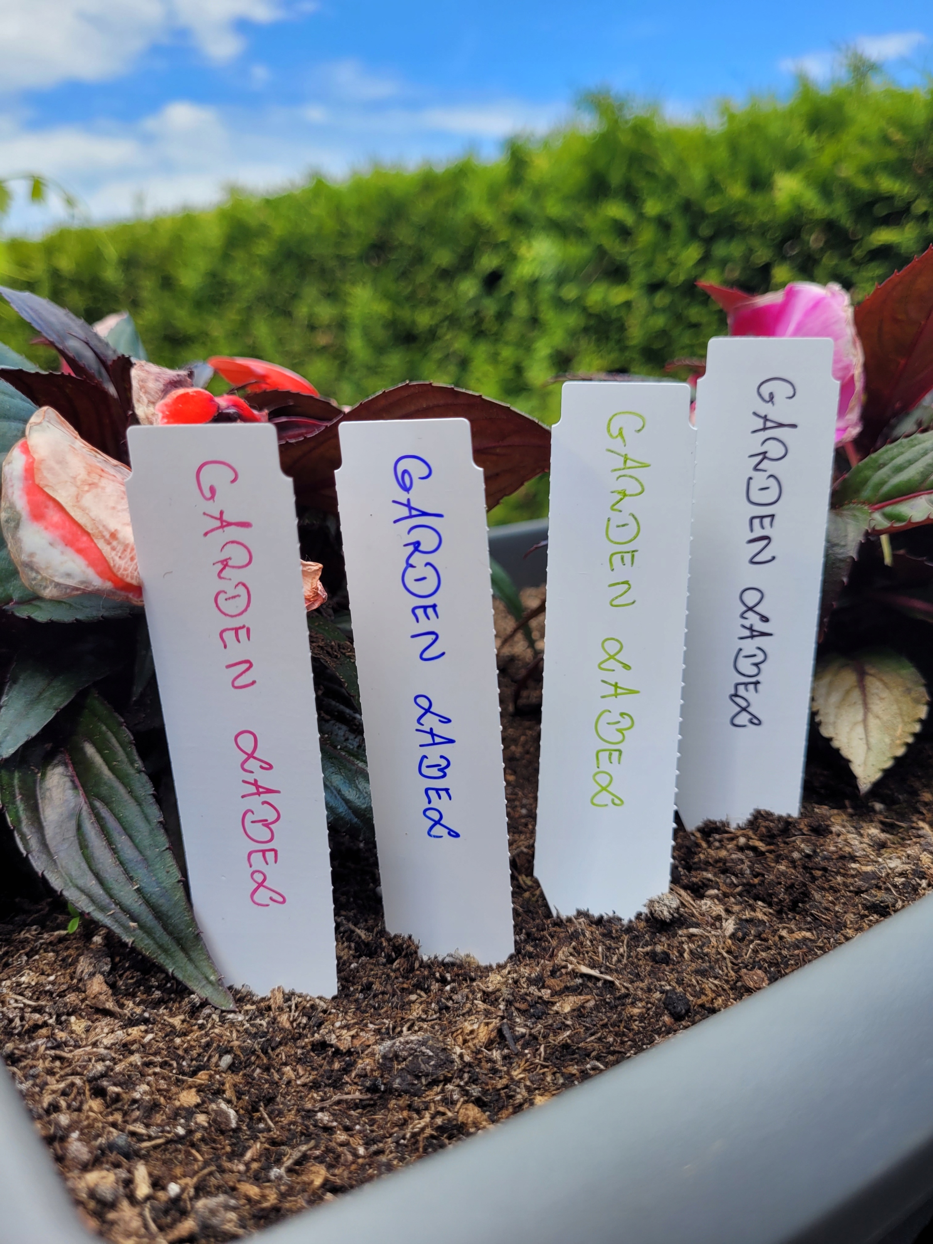 Profesjonalne etykiety ogrodnicze wykonane z trwałego HDPE o wymiarach 400x20mm (20×400), przeznaczone do opisywania markerem permanentnym.