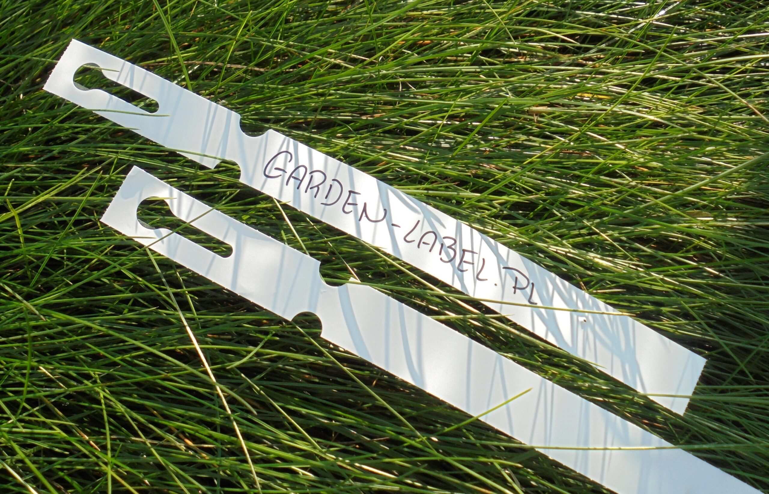 Profesjonalne etykiety ogrodnicze wykonane z trwałego HDPE o wymiarach 200x17mm (17×200), przeznaczone do opisywania markerem permanentnym.