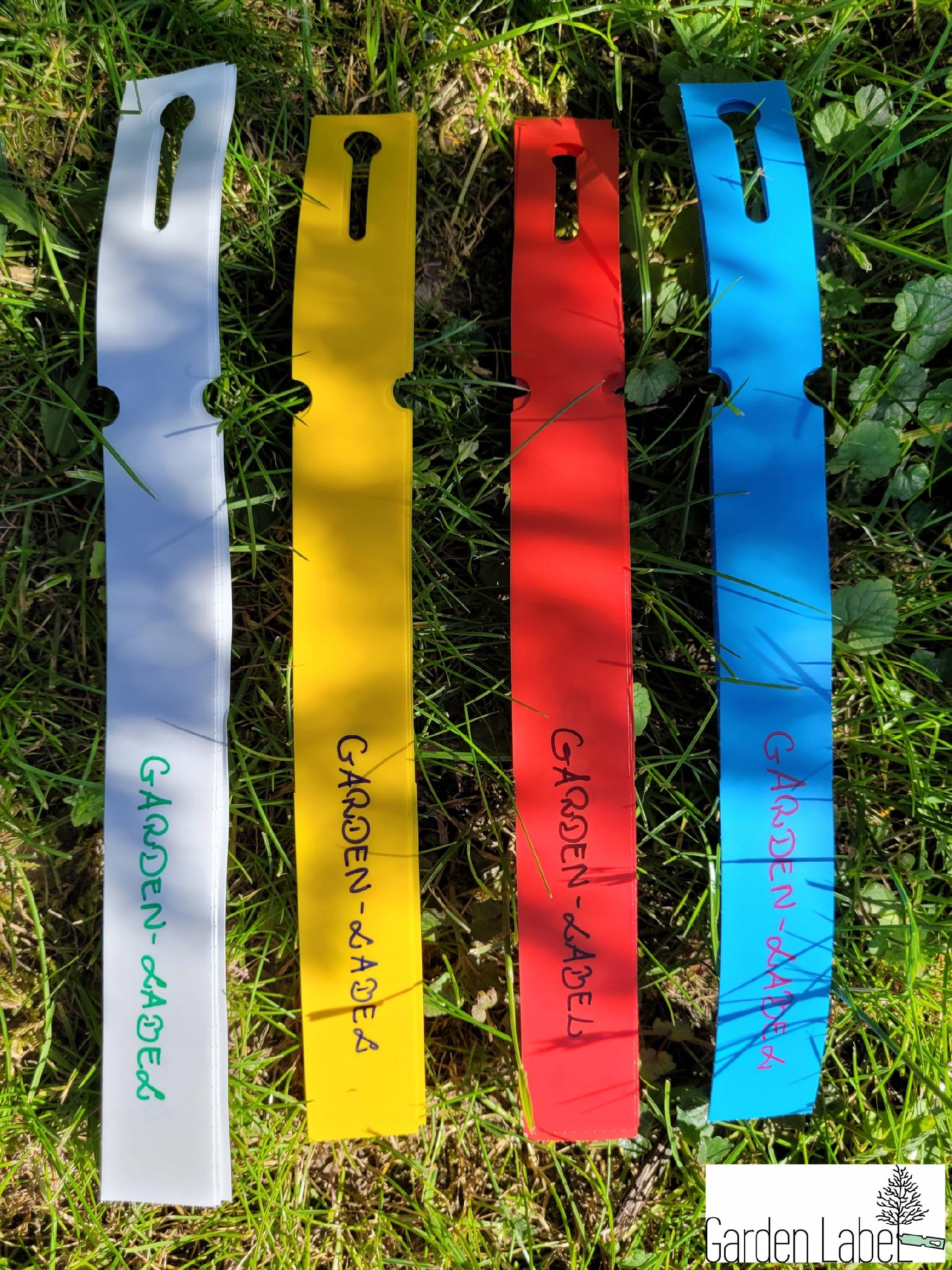 Profesjonalne etykiety ogrodnicze wykonane z trwałego HDPE o wymiarach 250x25mm (25×250), przeznaczone do opisywania markerem permanentnym.