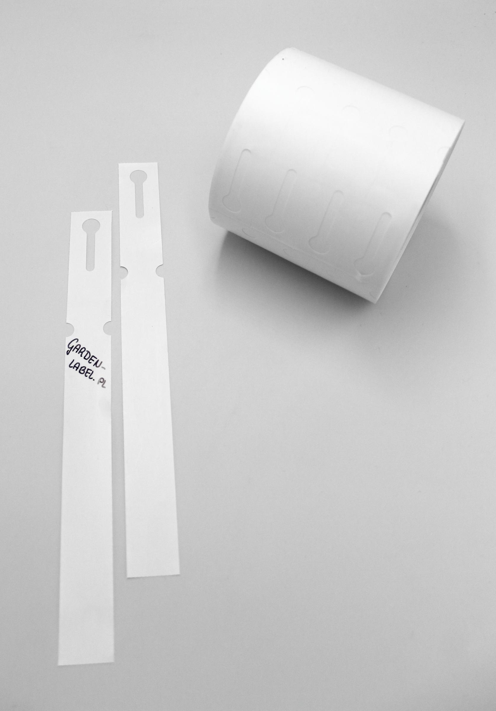Profesjonalne etykiety ogrodnicze wykonane z trwałego HDPE o wymiarach 250x25mm (25×250), przeznaczone do druku termotransferowego oraz opisywania markerem permanentnym.