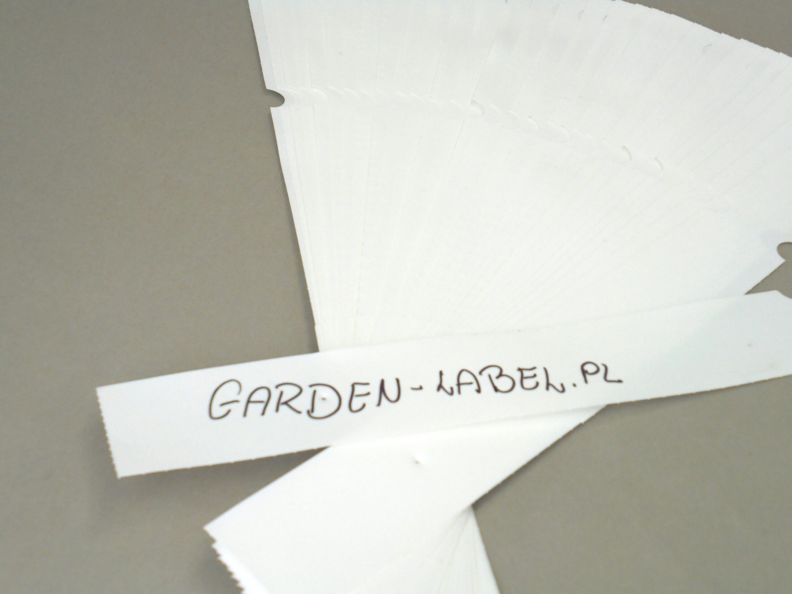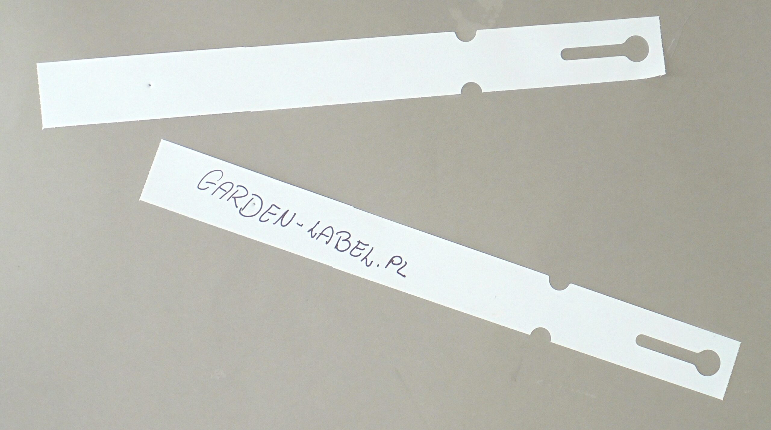 Profesjonalne etykiety ogrodnicze wykonane z trwałego HDPE o wymiarach 200x25mm (25×200), przeznaczone do opisywania markerem permanentnym.