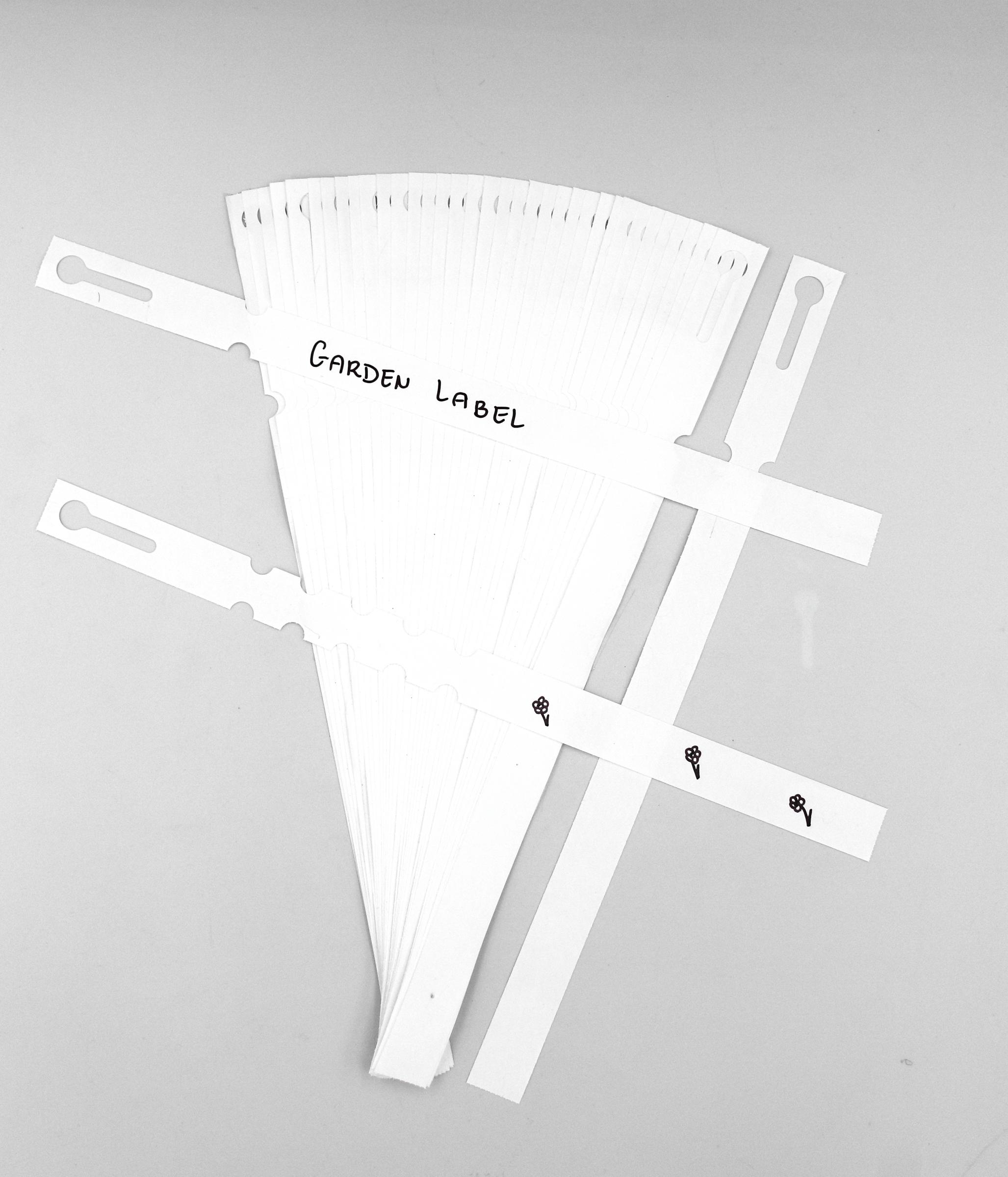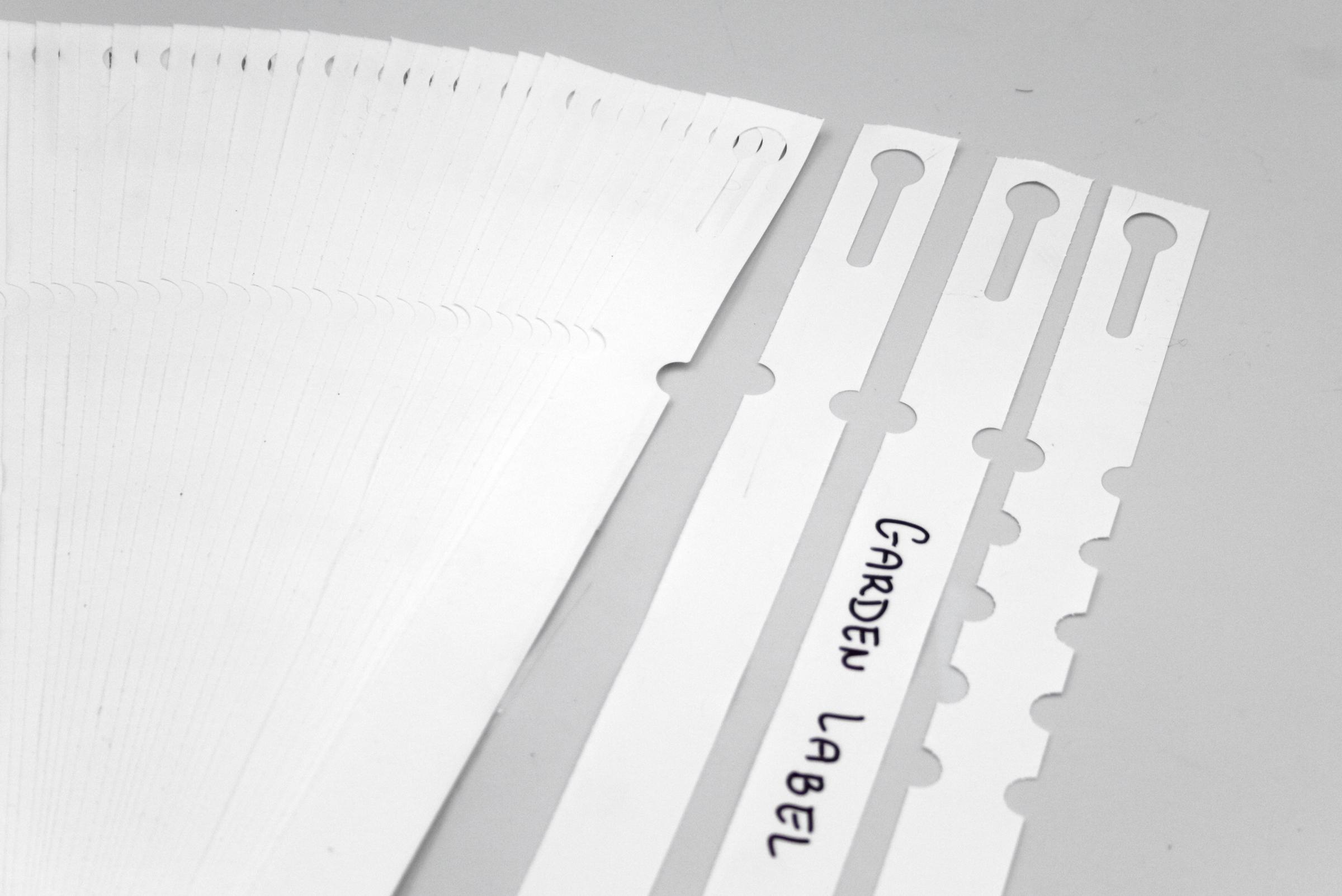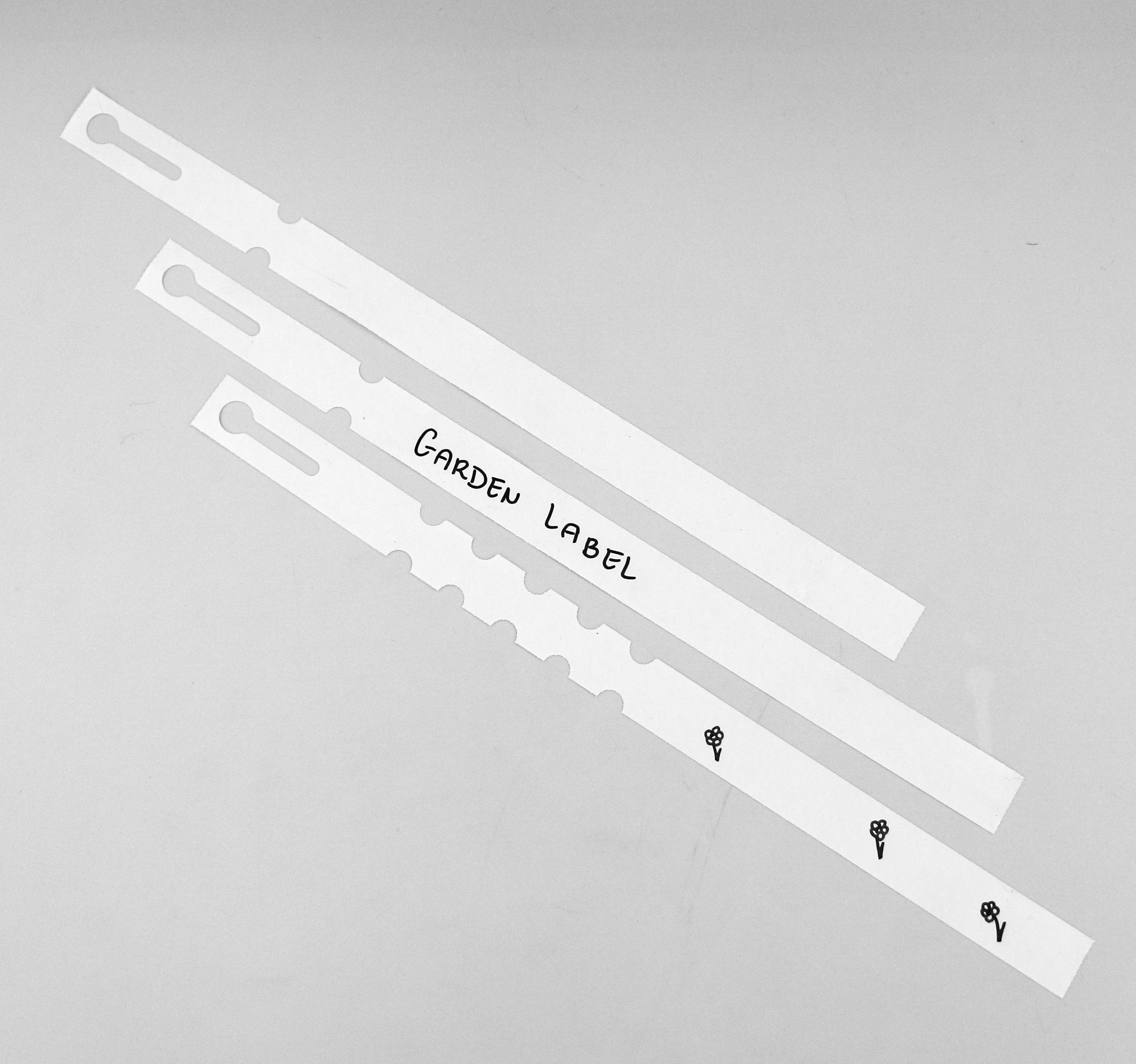 Profesjonalne etykiety ogrodnicze wykonane z trwałego HDPE o wymiarach 300×20 mm (20×300), przeznaczone do opisywania markerem permanentnym.