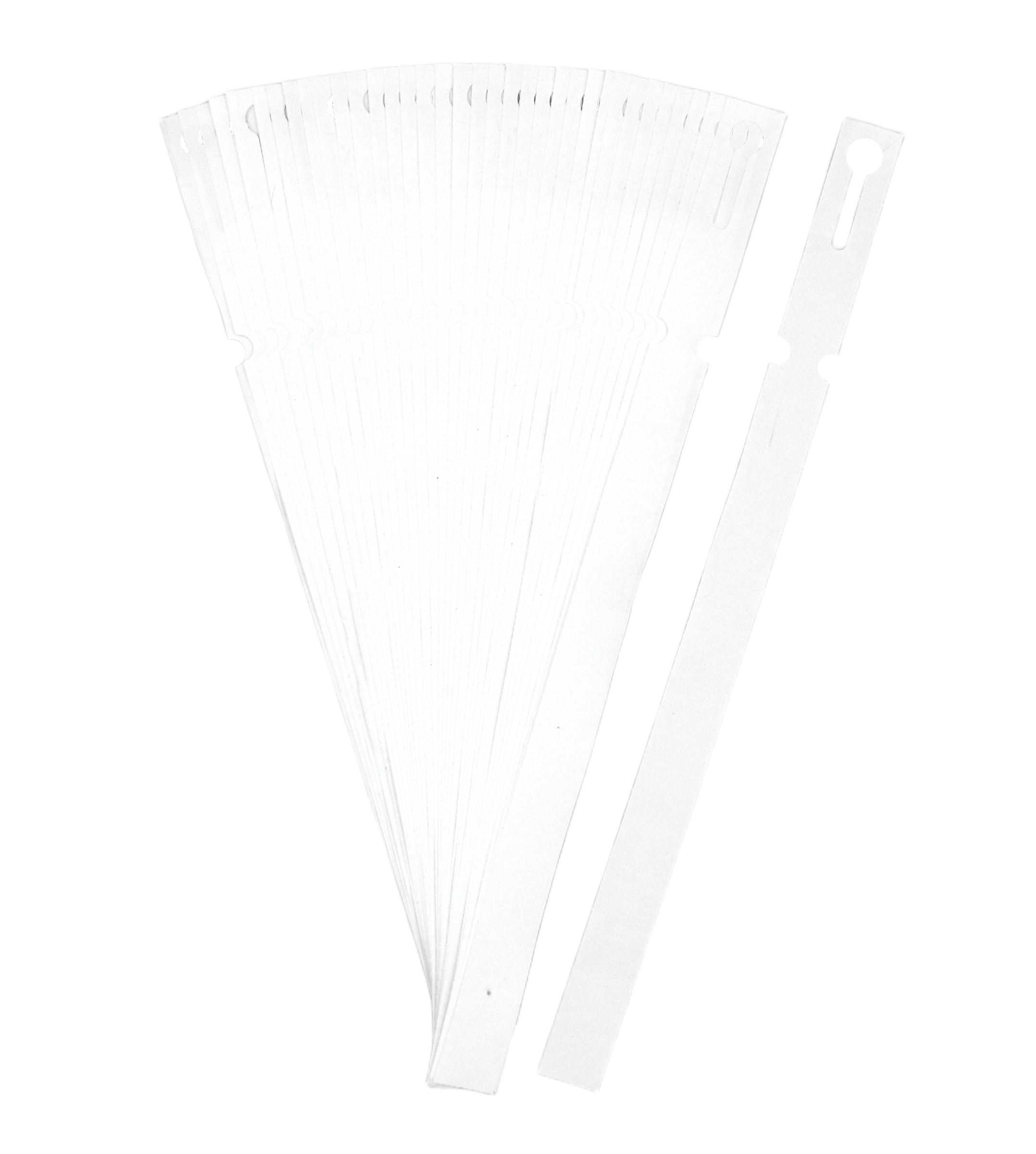 Gładka powierzchnia zapewnia trwałość i czytelność opisu w każdych warunkach. Dzięki elastycznemu kształtowi mocowanie jest szybkie i nie wymaga narzędzi.