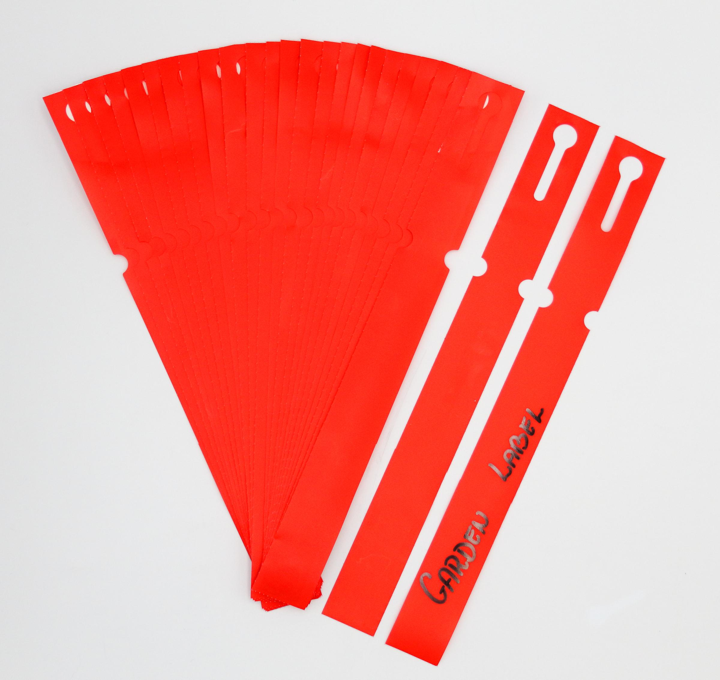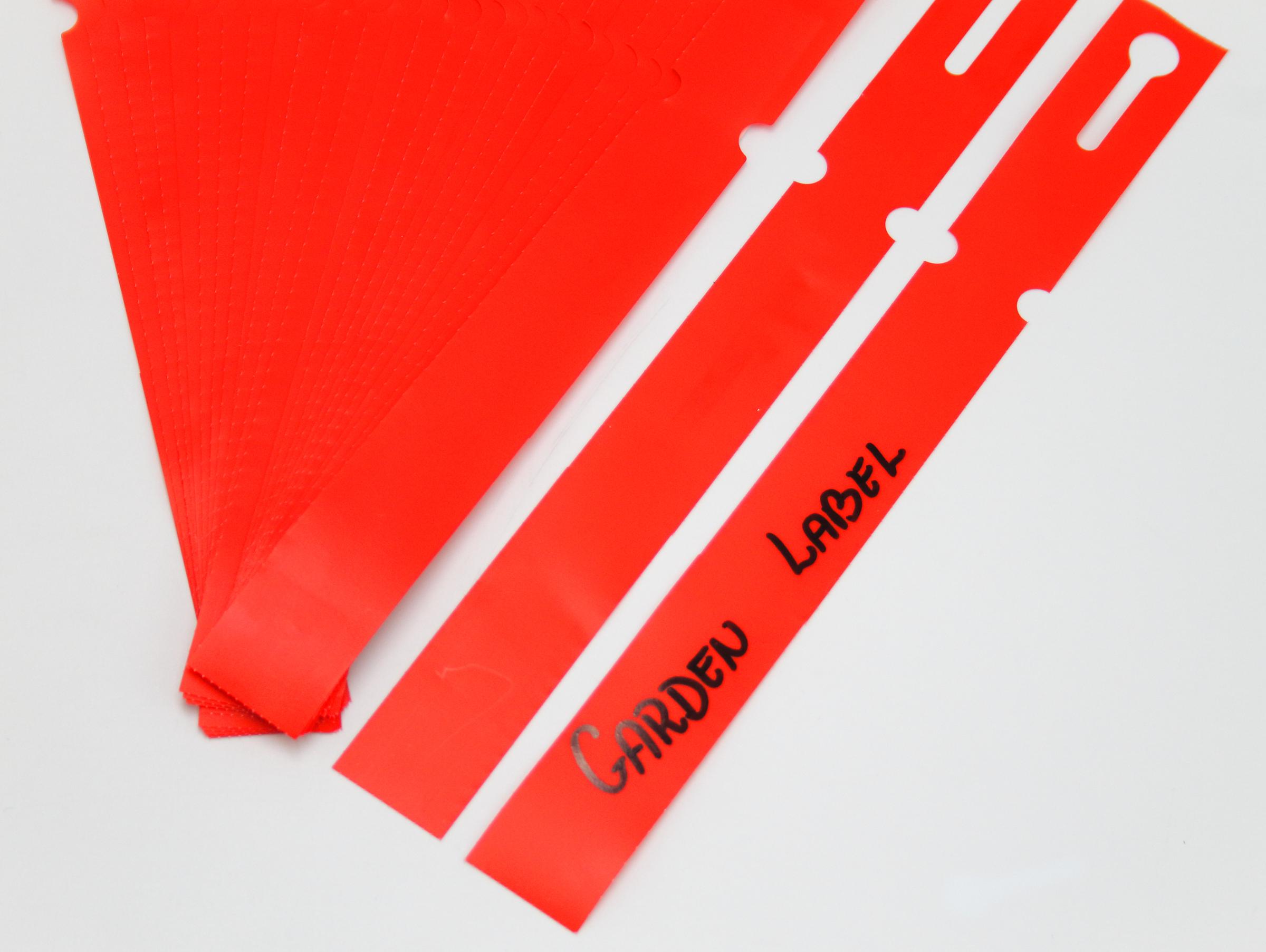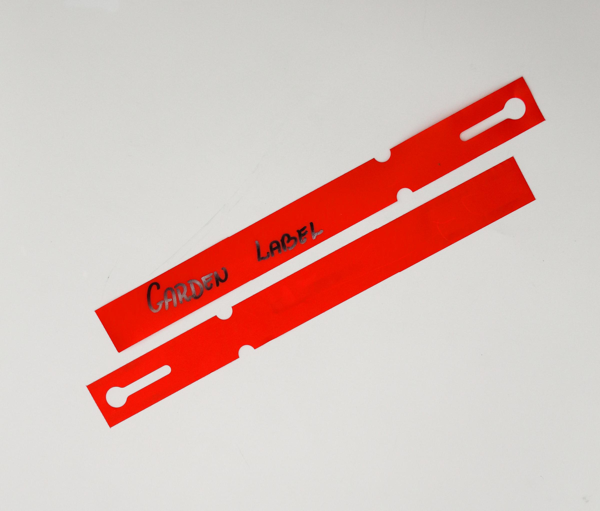 Profesjonalne etykiety ogrodnicze wykonane z trwałego HDPE o wymiarach 250x25mm (25×250), przeznaczone do druku termotransferowego oraz opisywania markerem permanentnym.