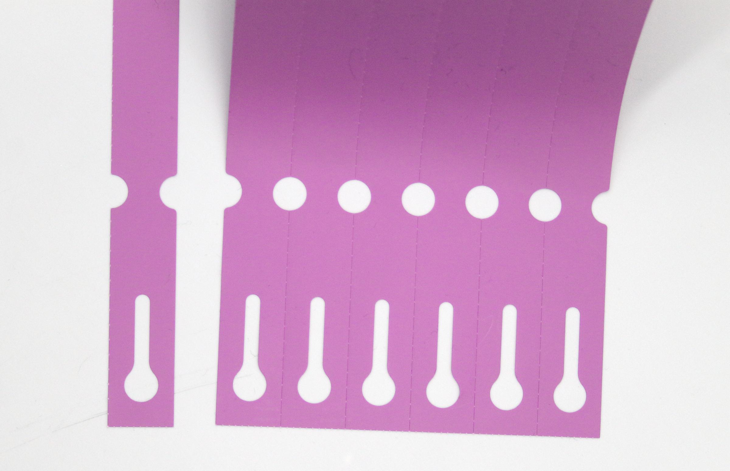 Gładka powierzchnia zapewnia trwałość i czytelność opisu w każdych warunkach. Dzięki elastycznemu kształtowi mocowanie jest szybkie i nie wymaga narzędzi.