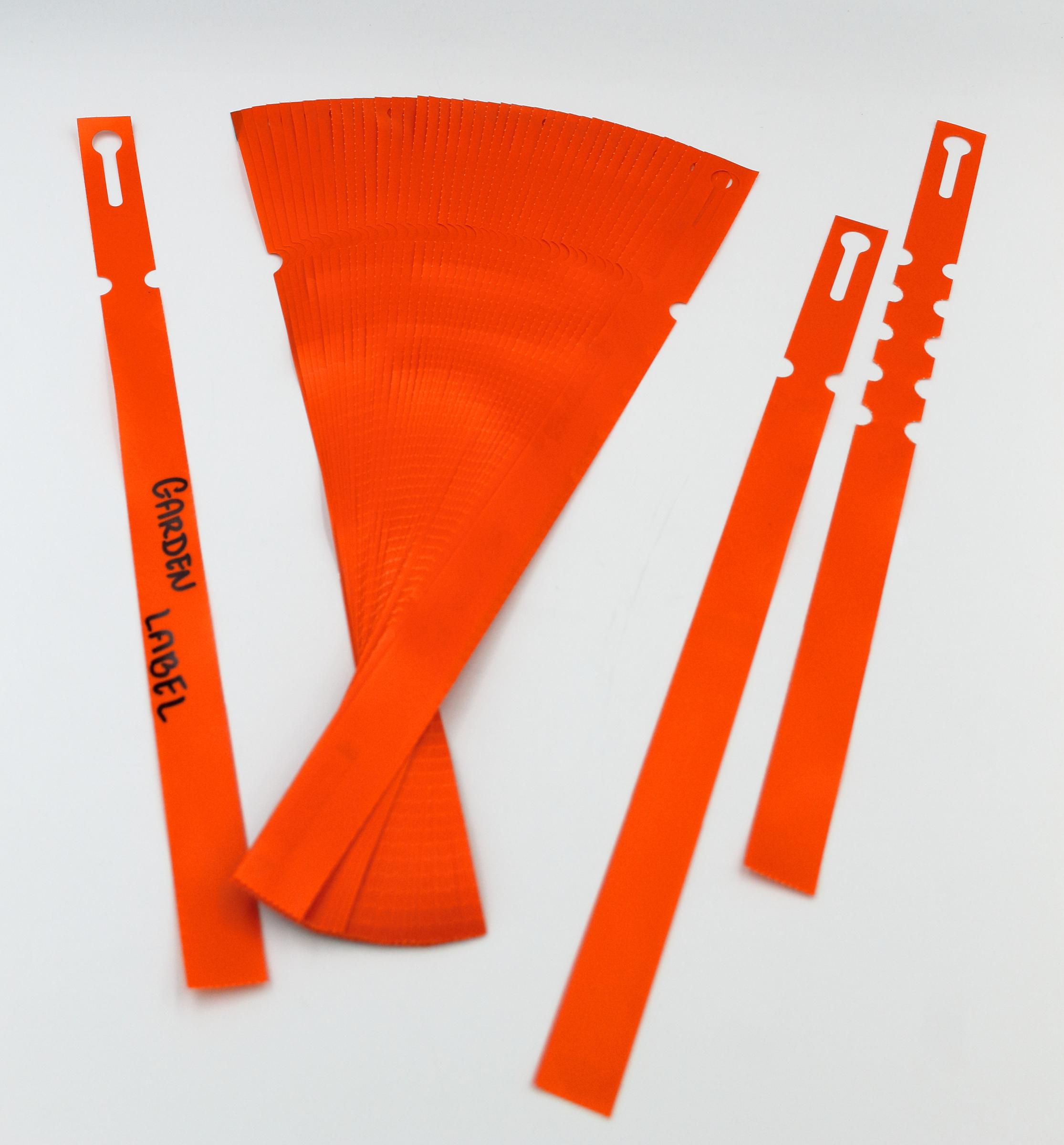 Profesjonalne etykiety ogrodnicze wykonane z trwałego HDPE o wymiarach 327x20mm (20×327), przeznaczone do opisywania markerem permanentnym.