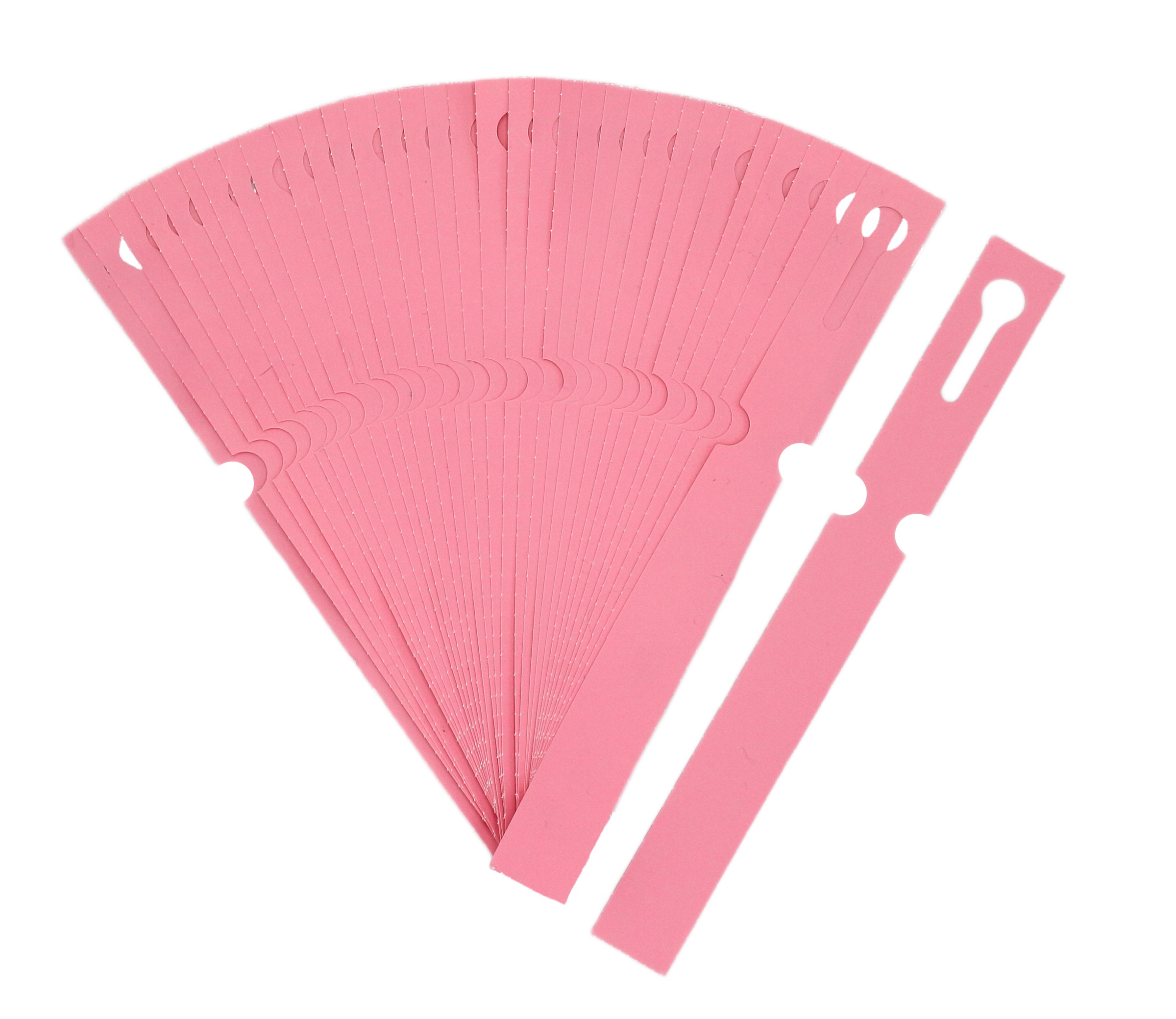 Gładka powierzchnia zapewnia trwałość i czytelność opisu w każdych warunkach. Dzięki elastycznemu kształtowi mocowanie jest szybkie i nie wymaga narzędzi.