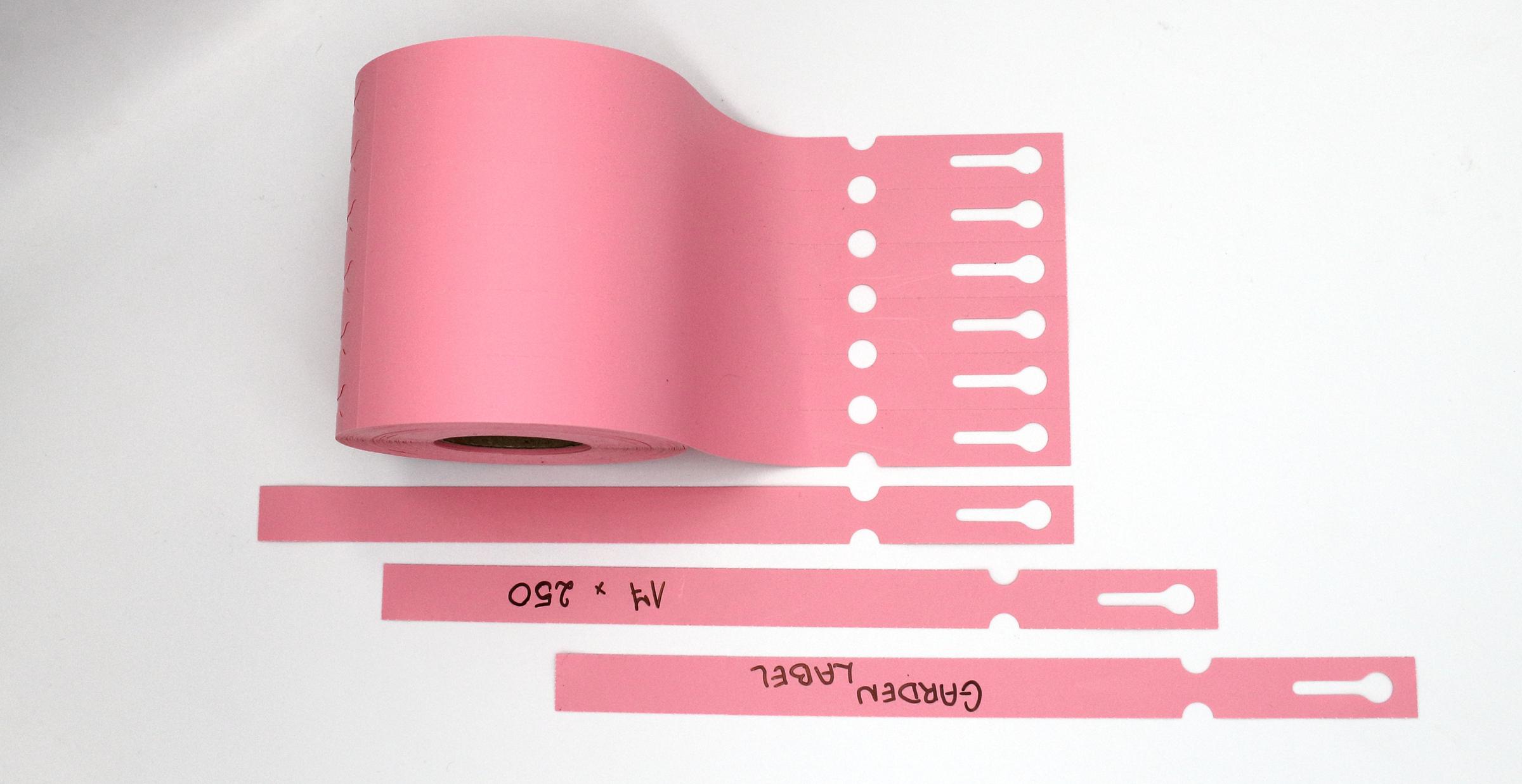 Profesjonalne etykiety ogrodnicze wykonane z trwałego HDPE o wymiarach 250x17mm (17×250), przeznaczone do druku termotransferowego oraz opisywania markerem permanentnym.