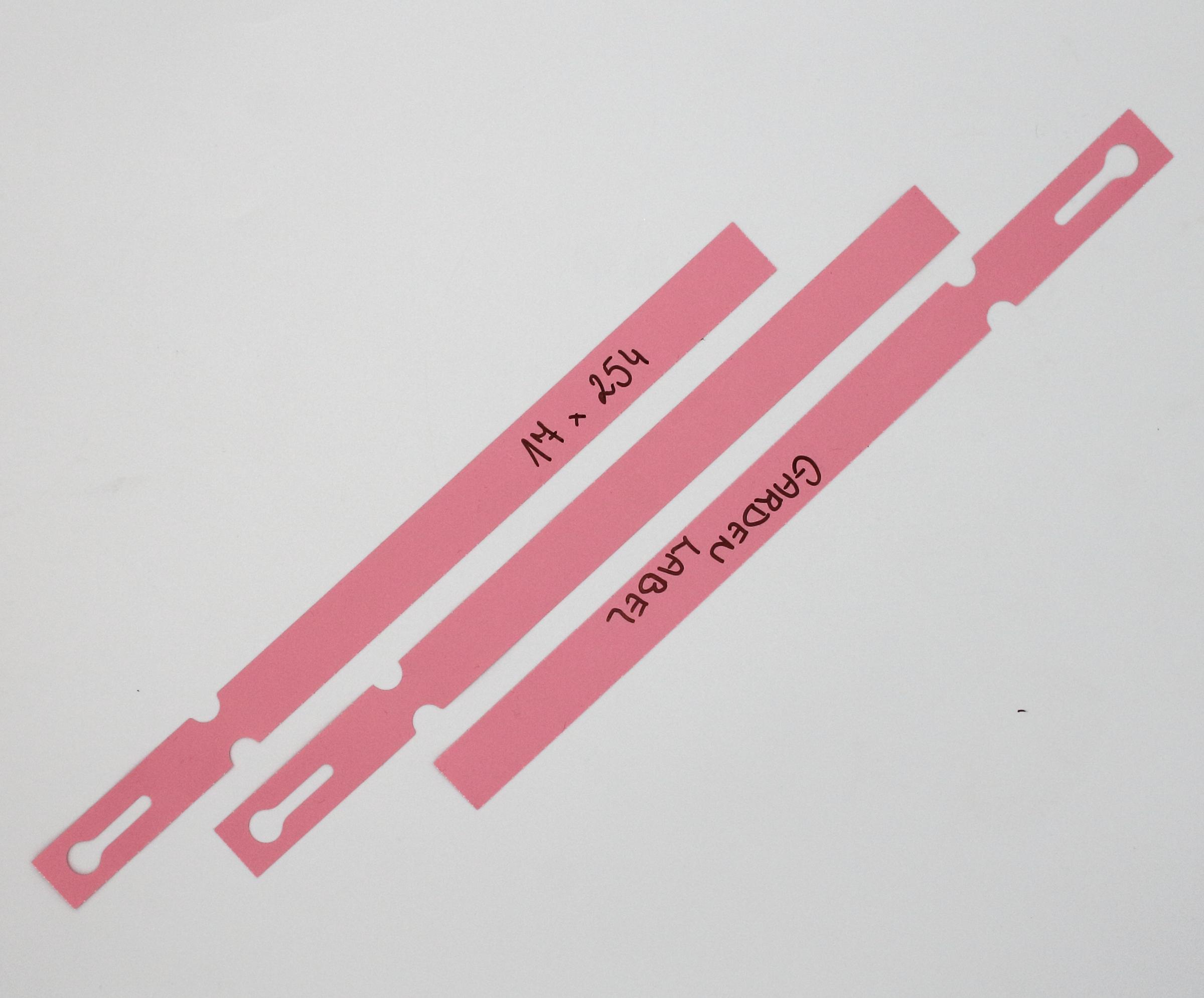 Profesjonalne etykiety ogrodnicze wykonane z trwałego HDPE o wymiarach 254x17mm (17×254), przeznaczone do druku termotransferowego oraz opisywania markerem permanentnym.