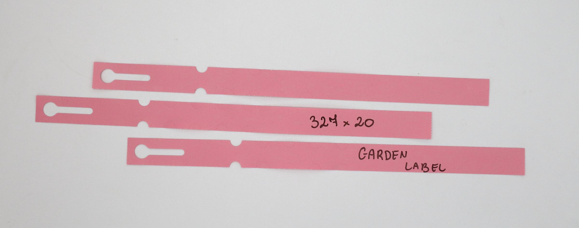 Profesjonalne etykiety ogrodnicze wykonane z trwałego HDPE o wymiarach 327x20mm (20×327), przeznaczone do opisywania markerem permanentnym.