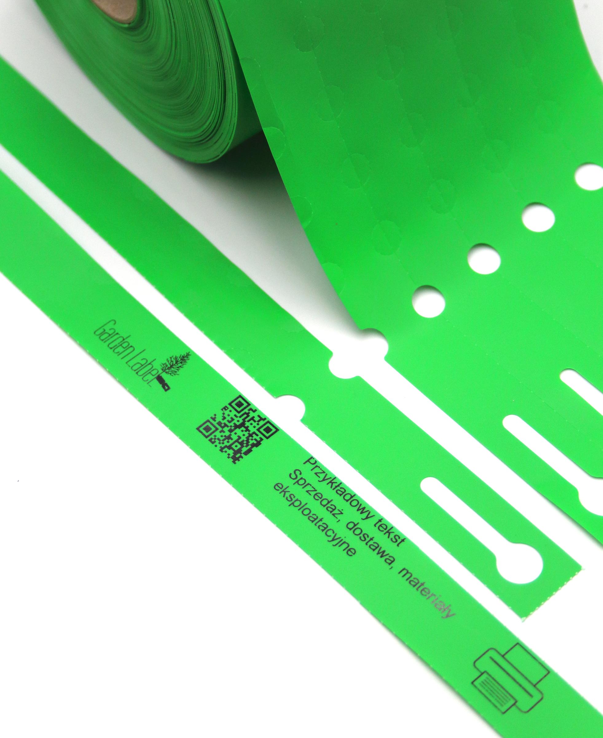 Profesjonalne etykiety ogrodnicze wykonane z trwałego HDPE o wymiarach 400×20 mm (20×400), przeznaczone do druku termotransferowego oraz opisywania markerem permanentnym.