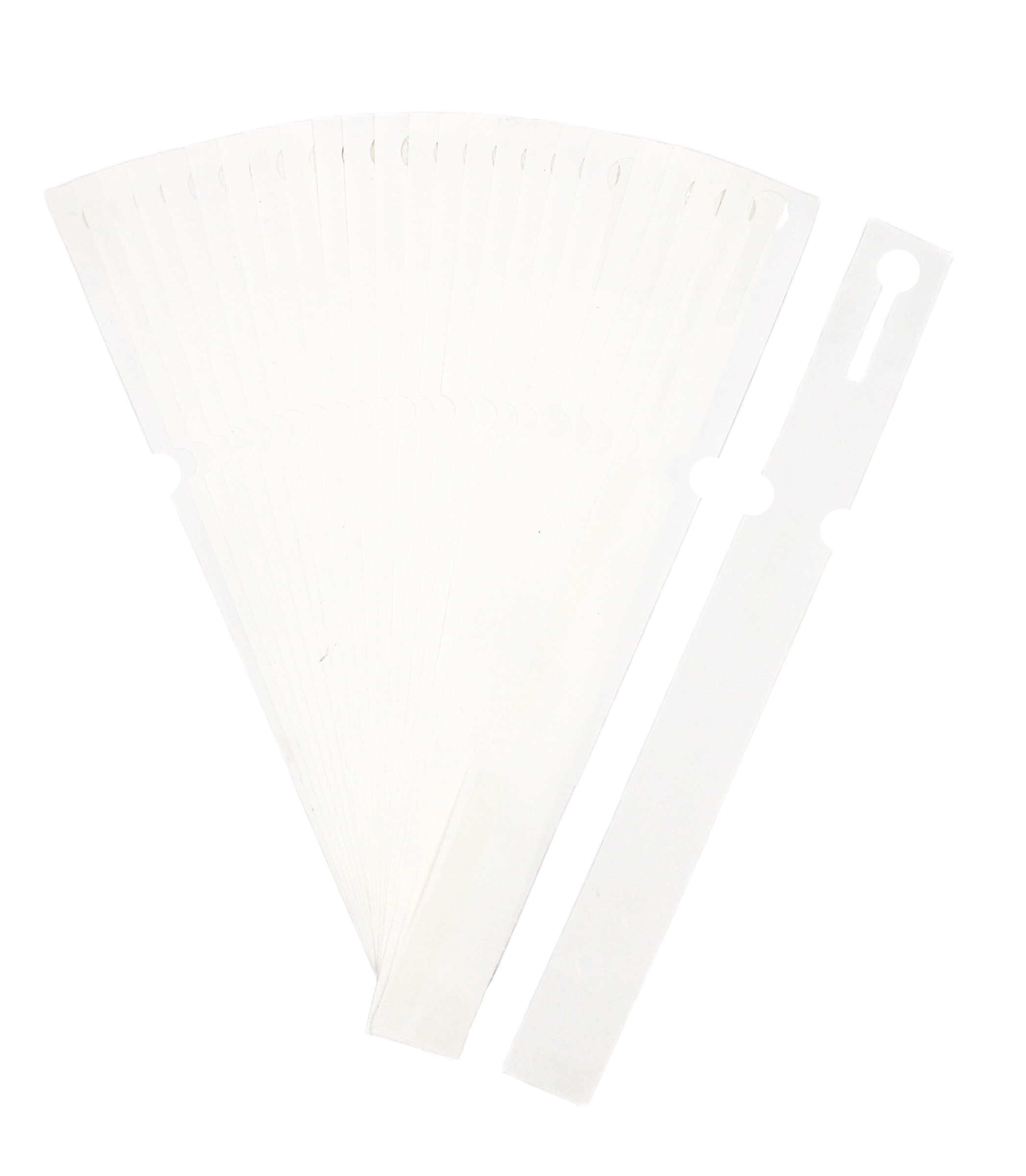 Gładka powierzchnia zapewnia trwałość i czytelność opisu w każdych warunkach. Dzięki elastycznemu kształtowi mocowanie jest szybkie i nie wymaga narzędzi.