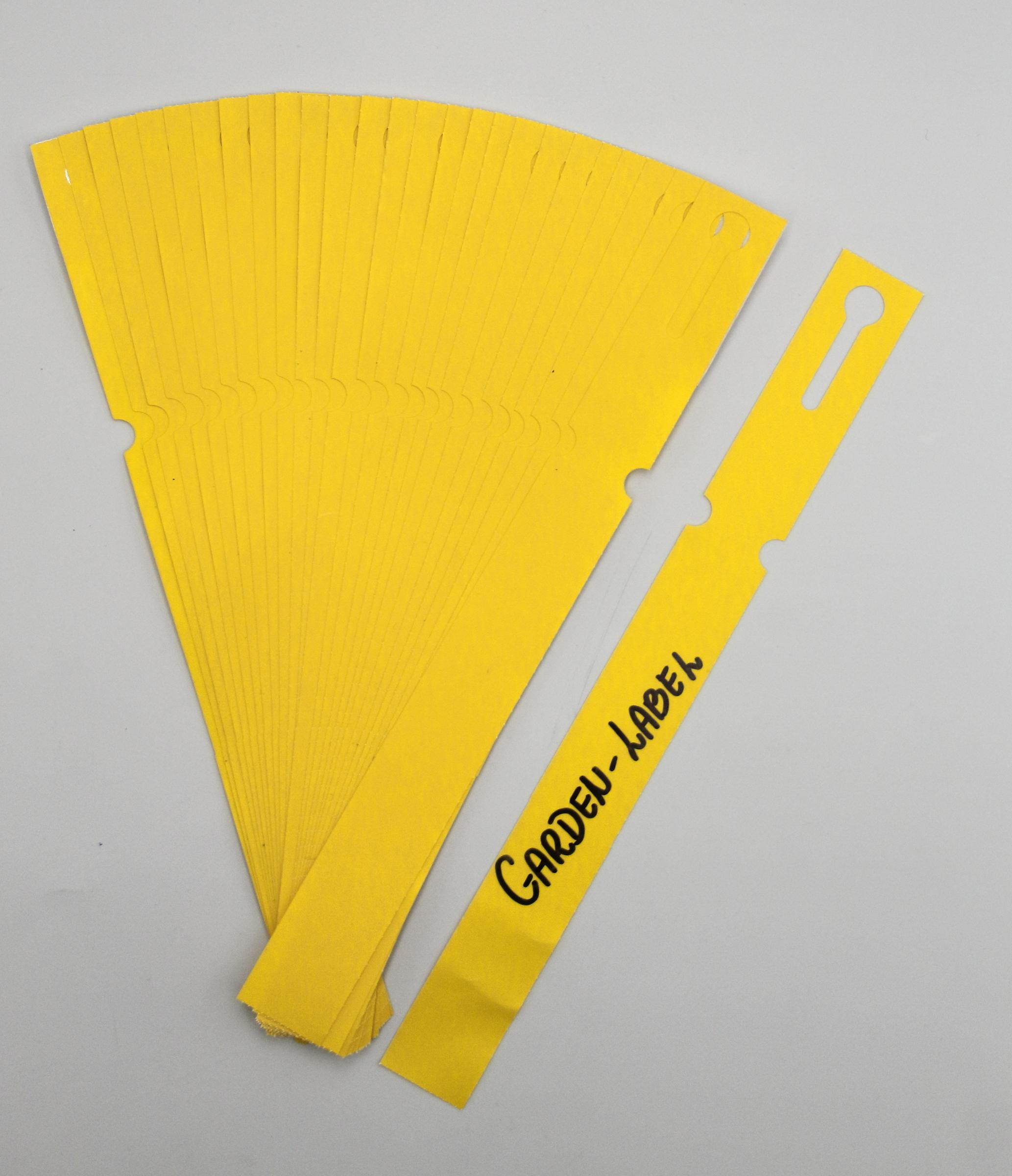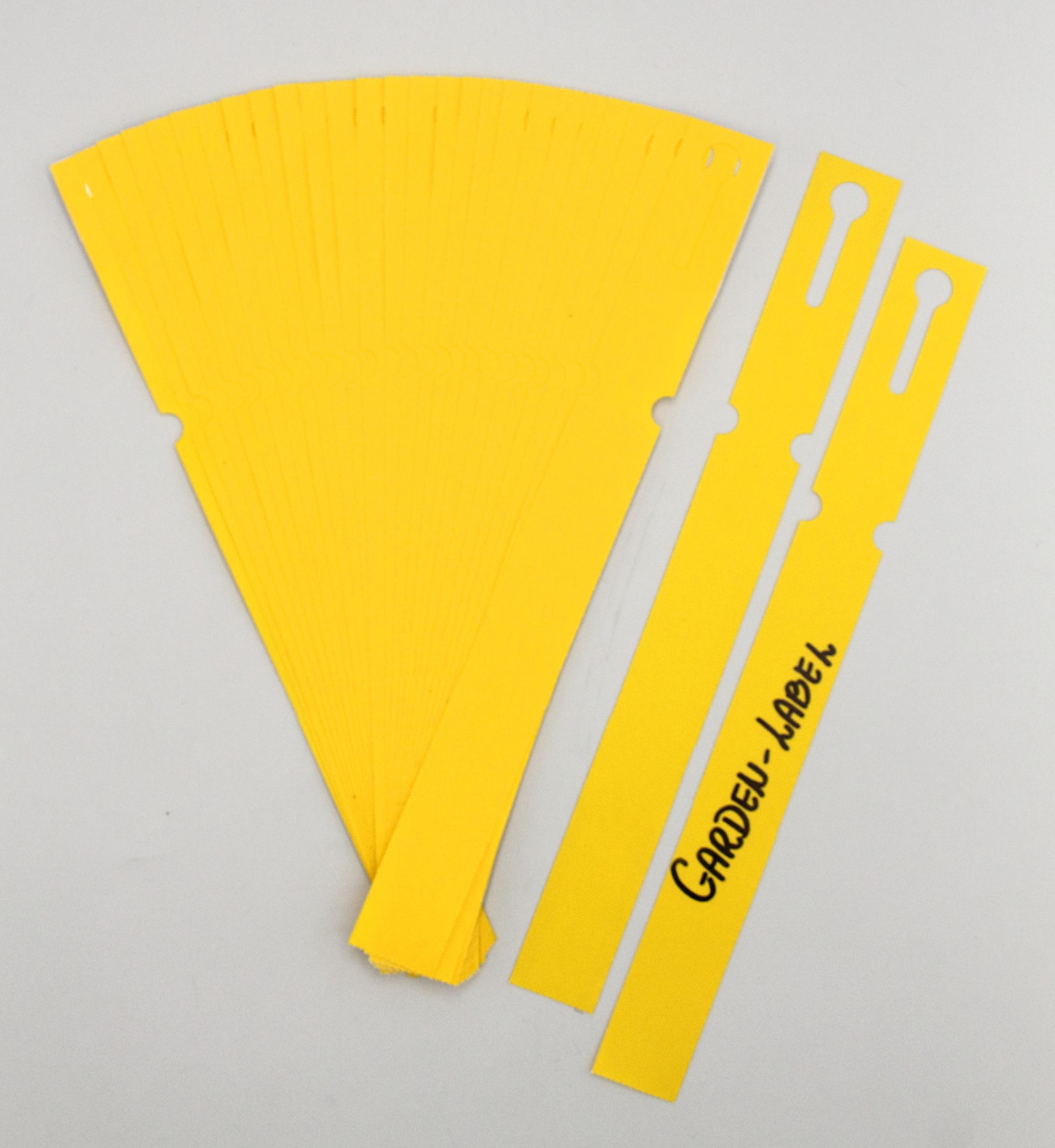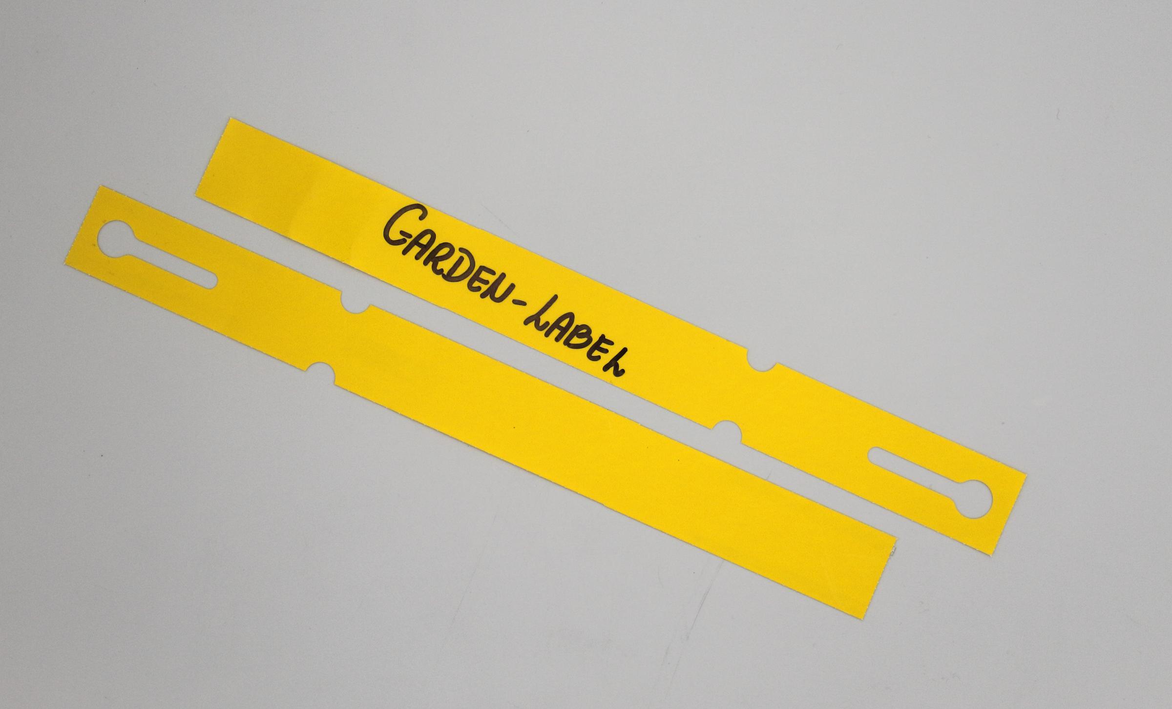 Profesjonalne etykiety ogrodnicze wykonane z trwałego HDPE o wymiarach 250x25mm (25×250), przeznaczone do opisywania markerem permanentnym.