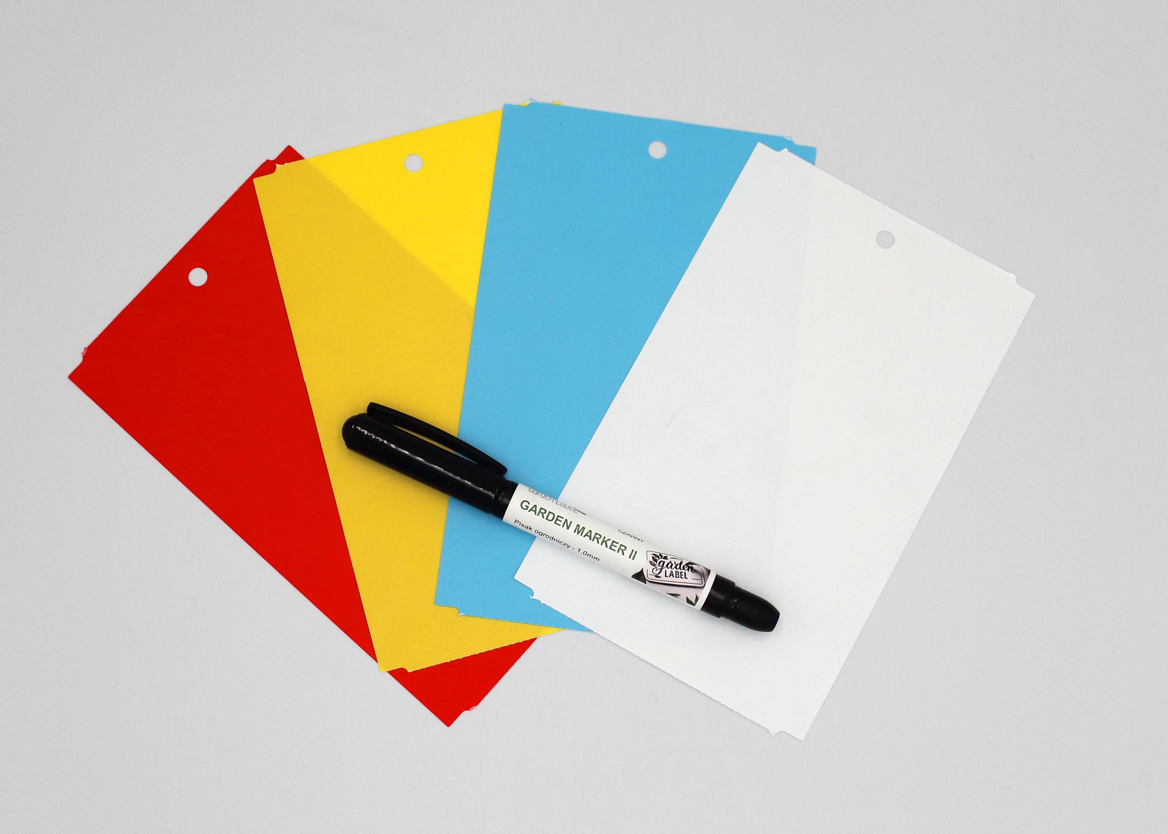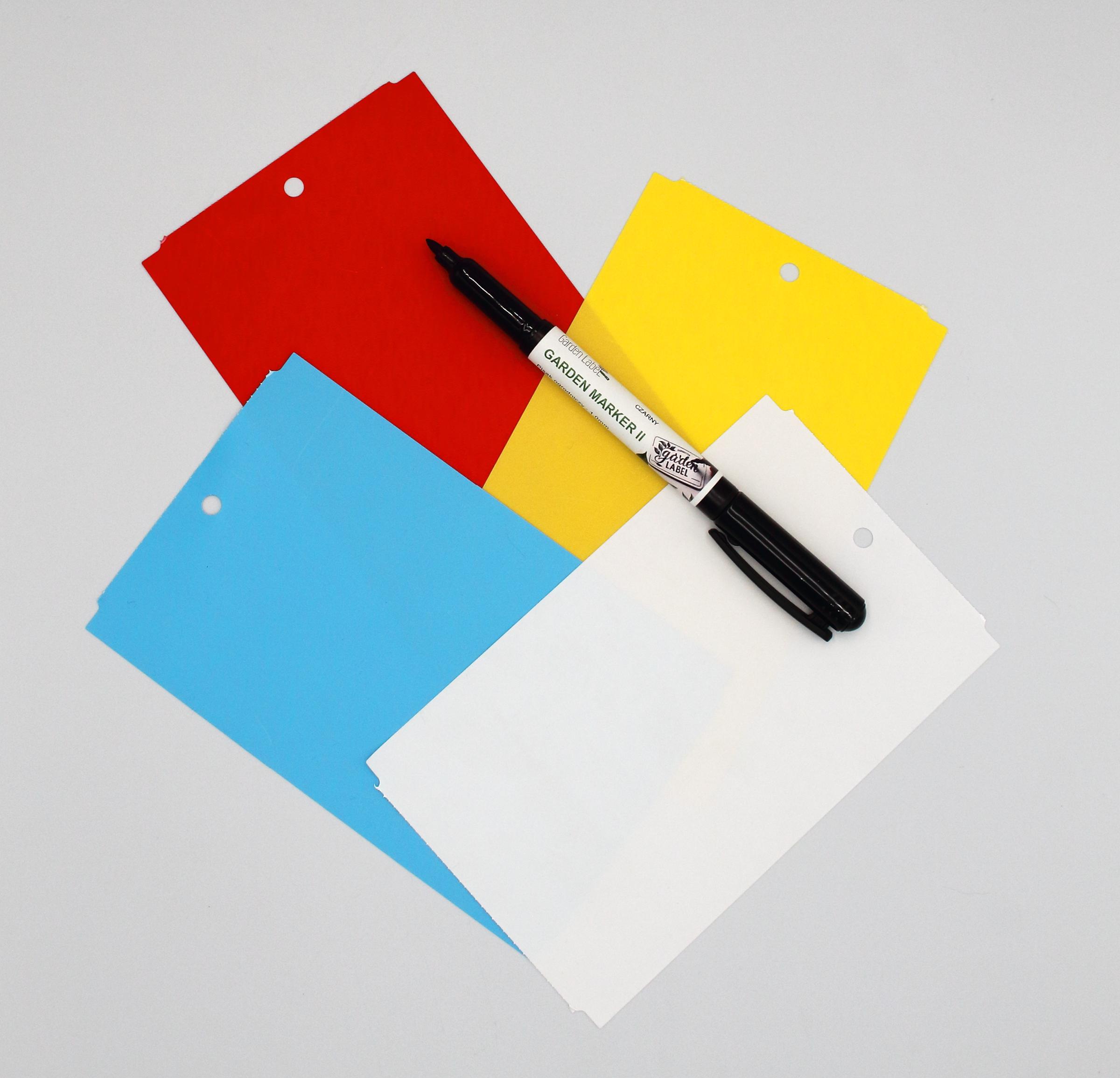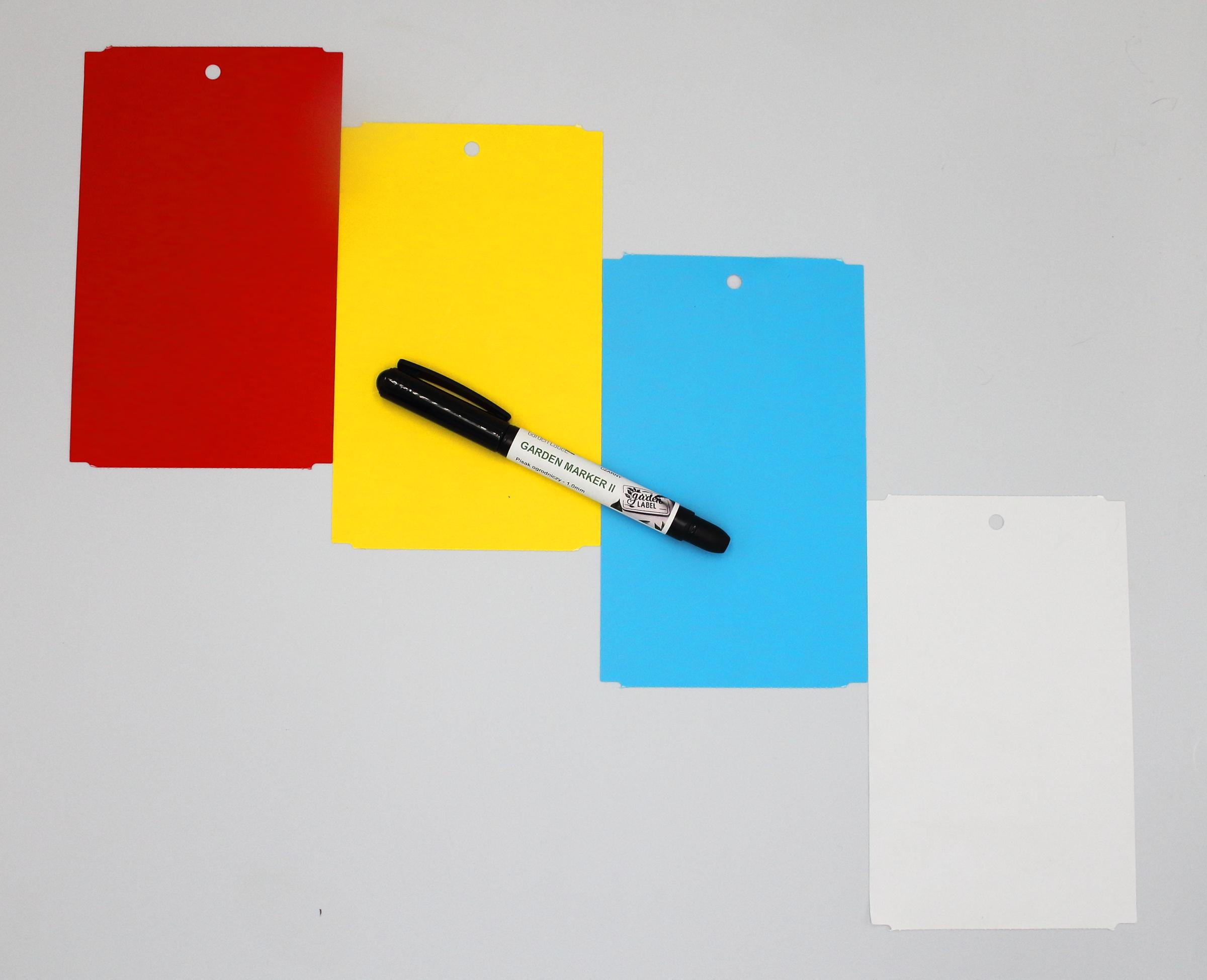 GARDEN MARKER II + Kolorowe zawieszki o wymiarze 163,5x100m do roślin wykonane z trwałego tworzywa HDPE z certyfikatem dopuszczenia do kontaktu z żywnością. To profesjonalne etykiety ogrodnicze przeznaczone do trwałego znakowania roślin w szkółkach, centrach ogrodniczych, gospodarstwach ogrodniczych oraz w uprawach owoców i warzyw.