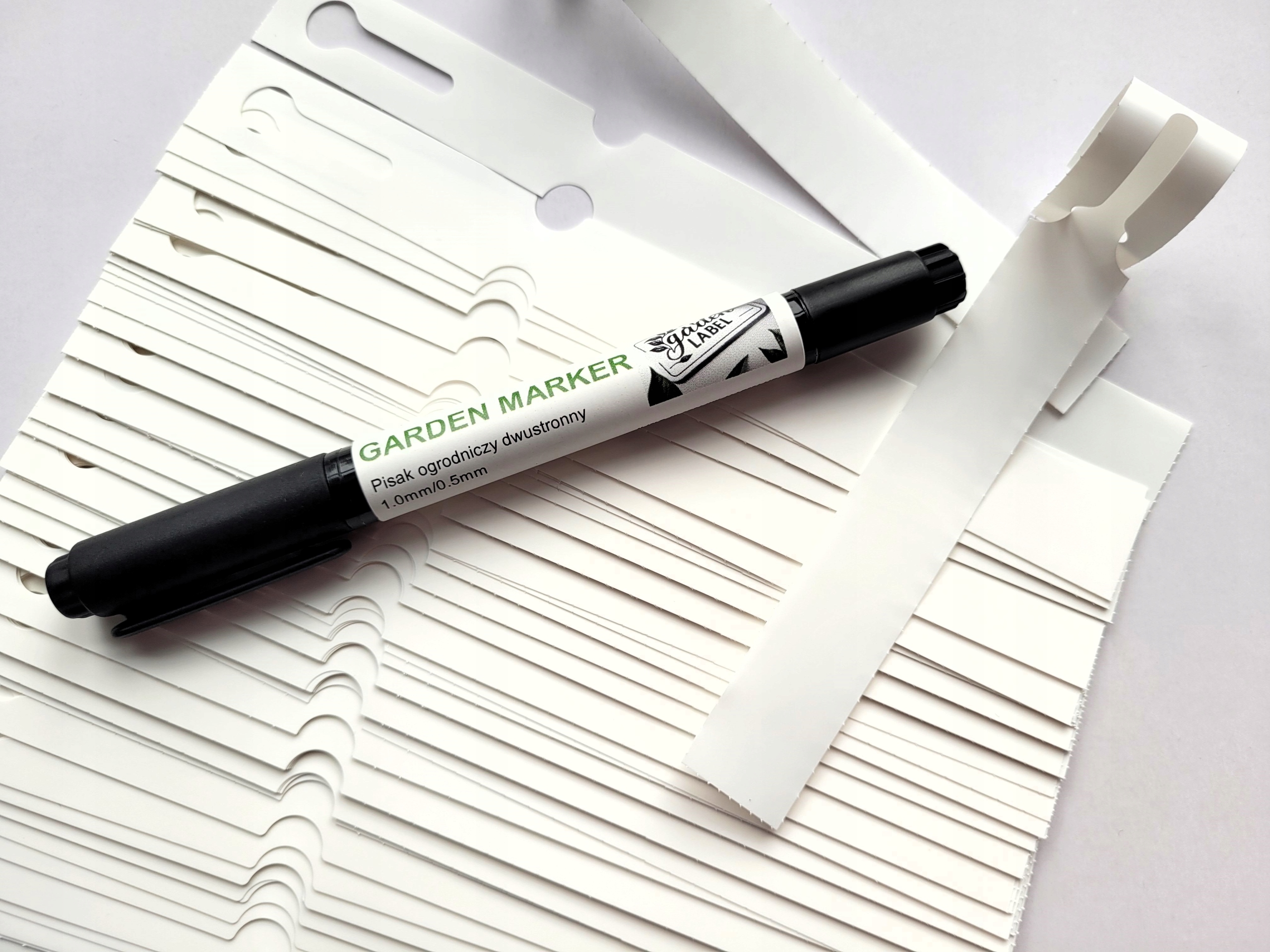 Profesjonalne etykiety ogrodnicze wykonane z trwałego HDPE o wymiarach 200x17mm (17×200), przeznaczone do opisywania markerem permanentnym.