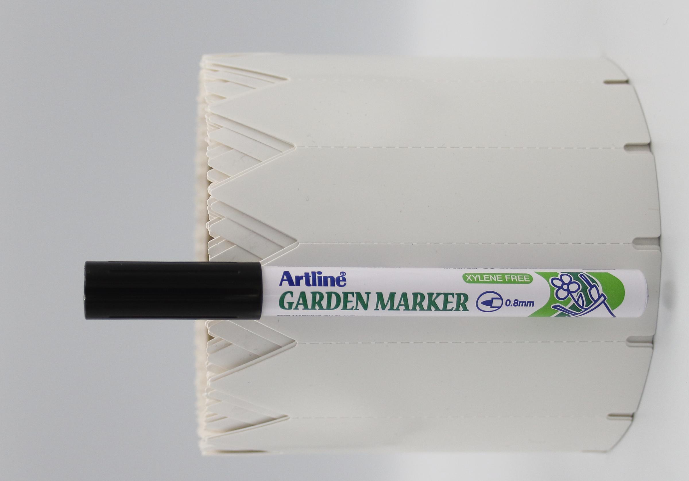 Permanentny czarny marker przeznaczony do trwałego opisania etykiet ogrodniczych. Wygodny w użyciu. Tusz wysycha natychmiastowo. Odporny na ścieranie, wilgoć oraz działania czynników zewnętrznych. Wytrzymały i wodoodporny .Fibrowa okrągła końcówka, 0 ,8 mm (szerokość linii). ,Dostępne kolory: czarny.