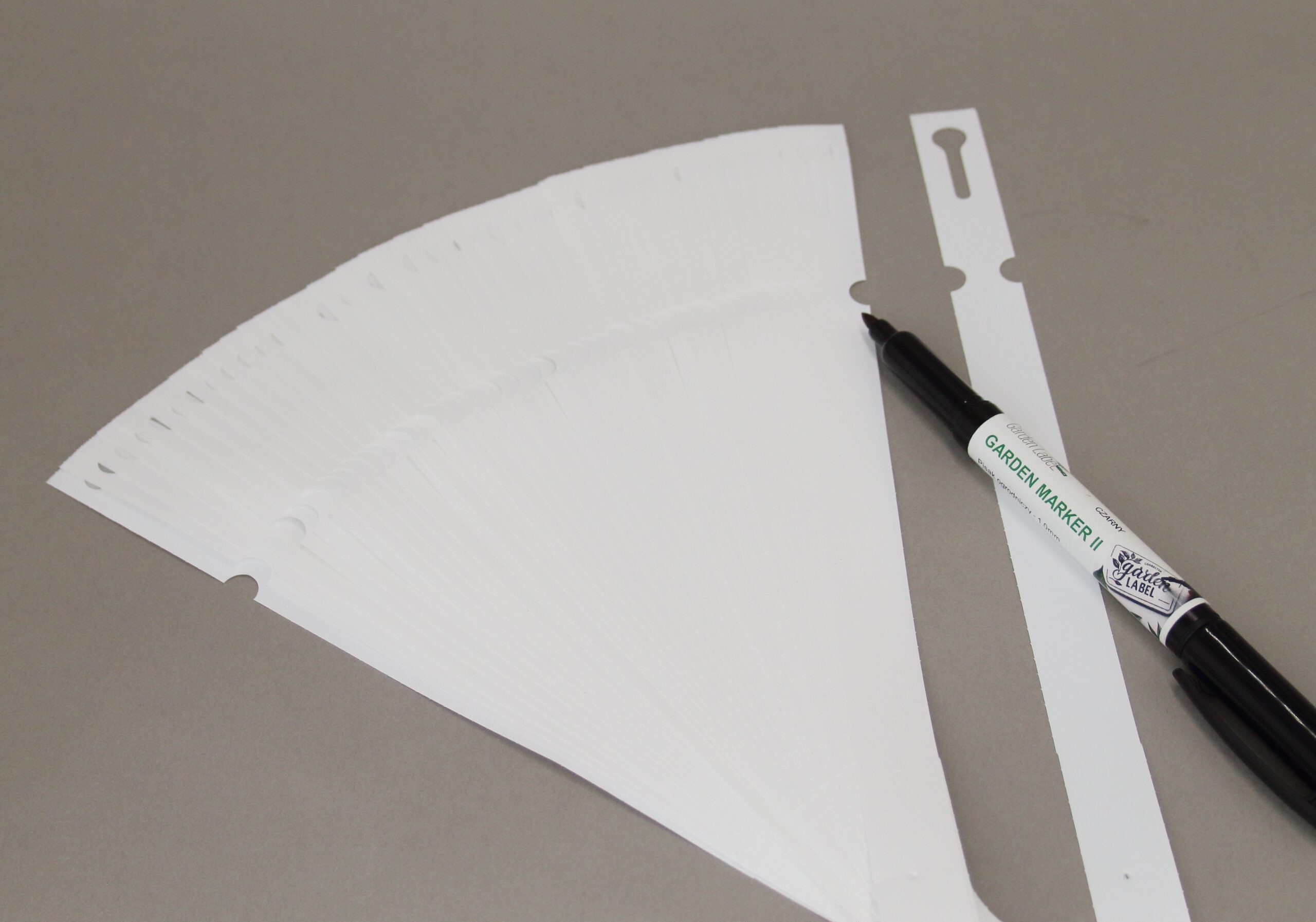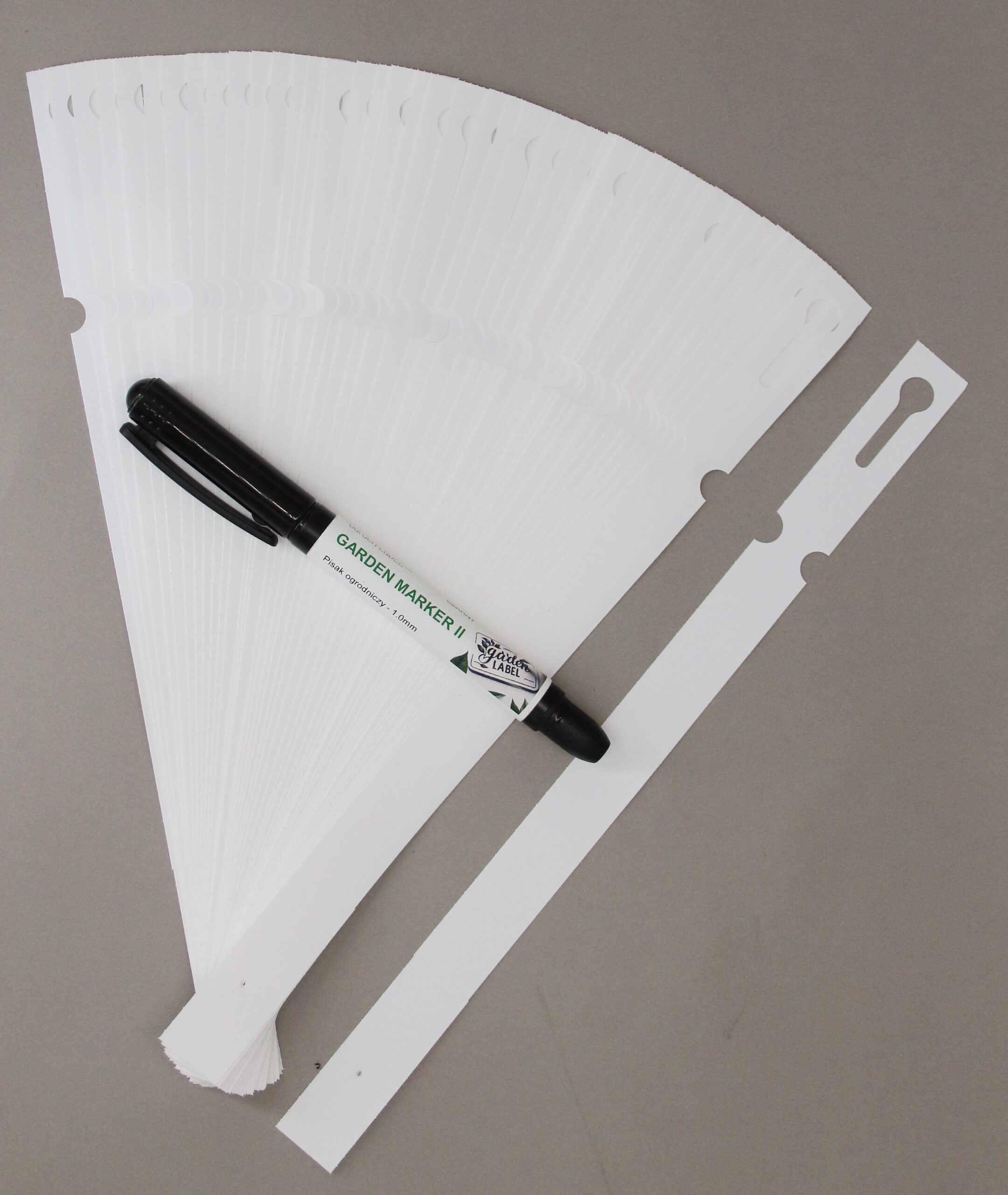 Profesjonalne etykiety ogrodnicze wykonane z trwałego HDPE o wymiarach 250x17mm (17×250), przeznaczone do opisywania markerem permanentnym.