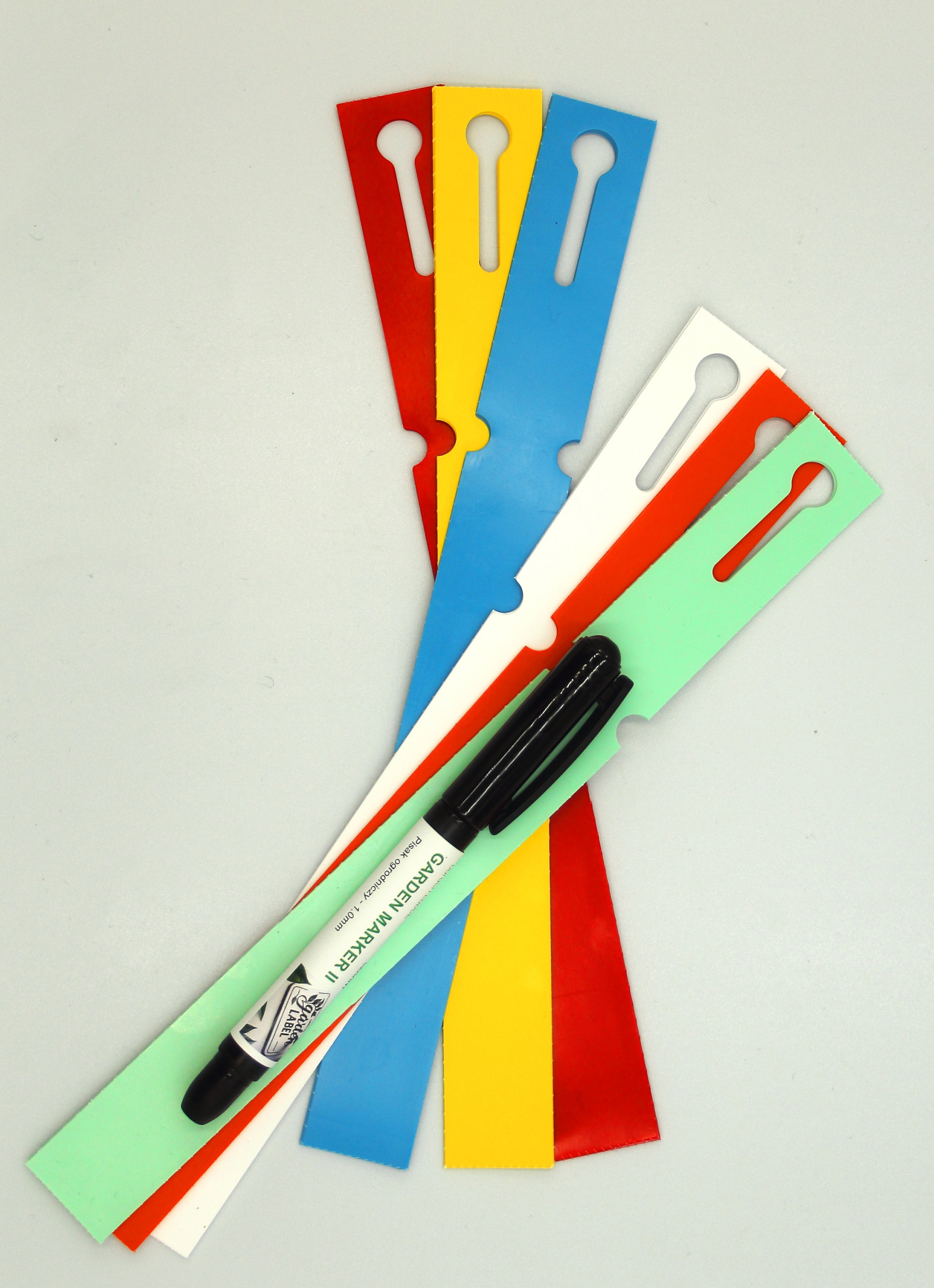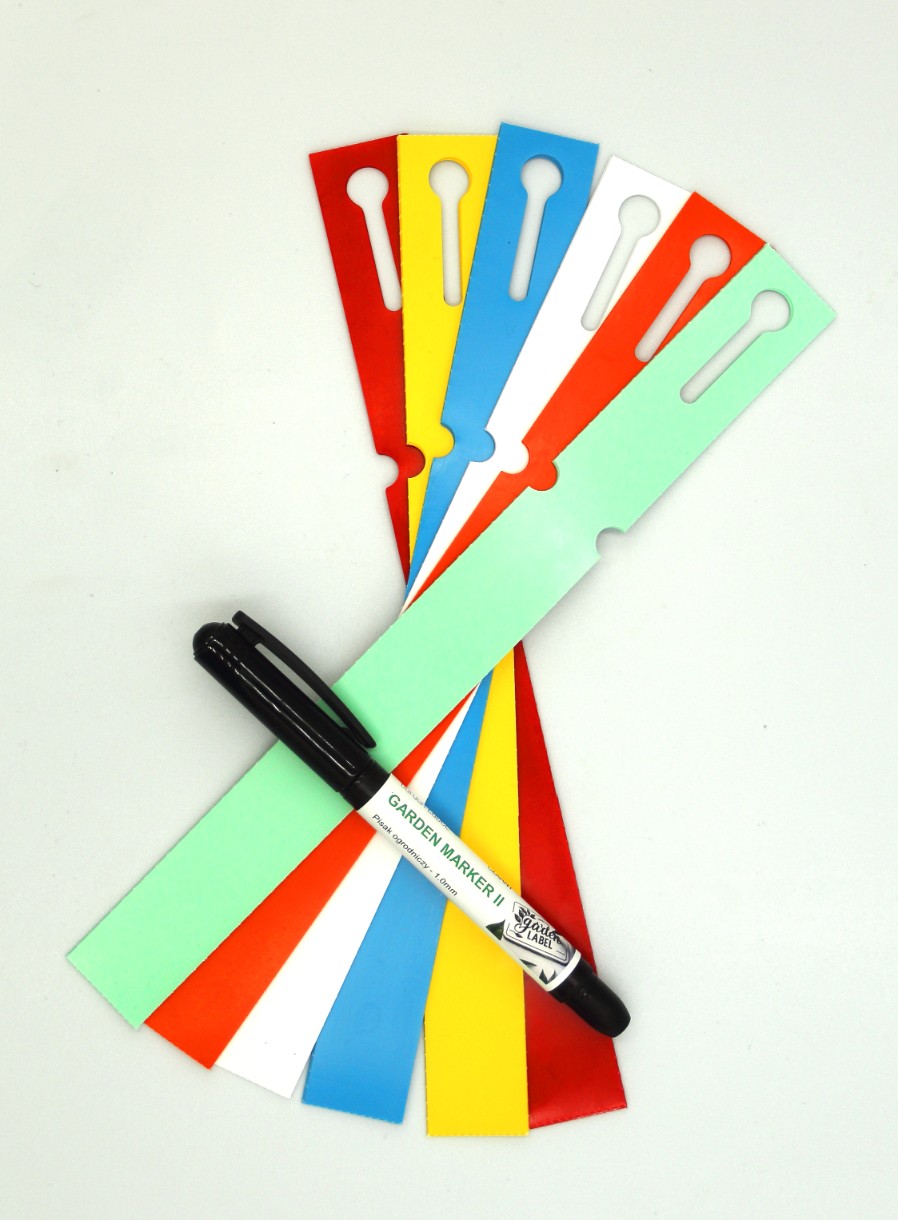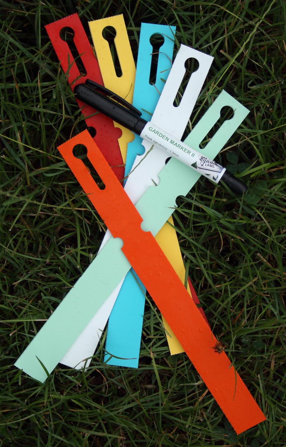 Profesjonalne etykiety ogrodnicze wykonane z trwałego HDPE o wymiarach 250×25 mm (25×250), przeznaczone do opisywania markerem permanentnym.