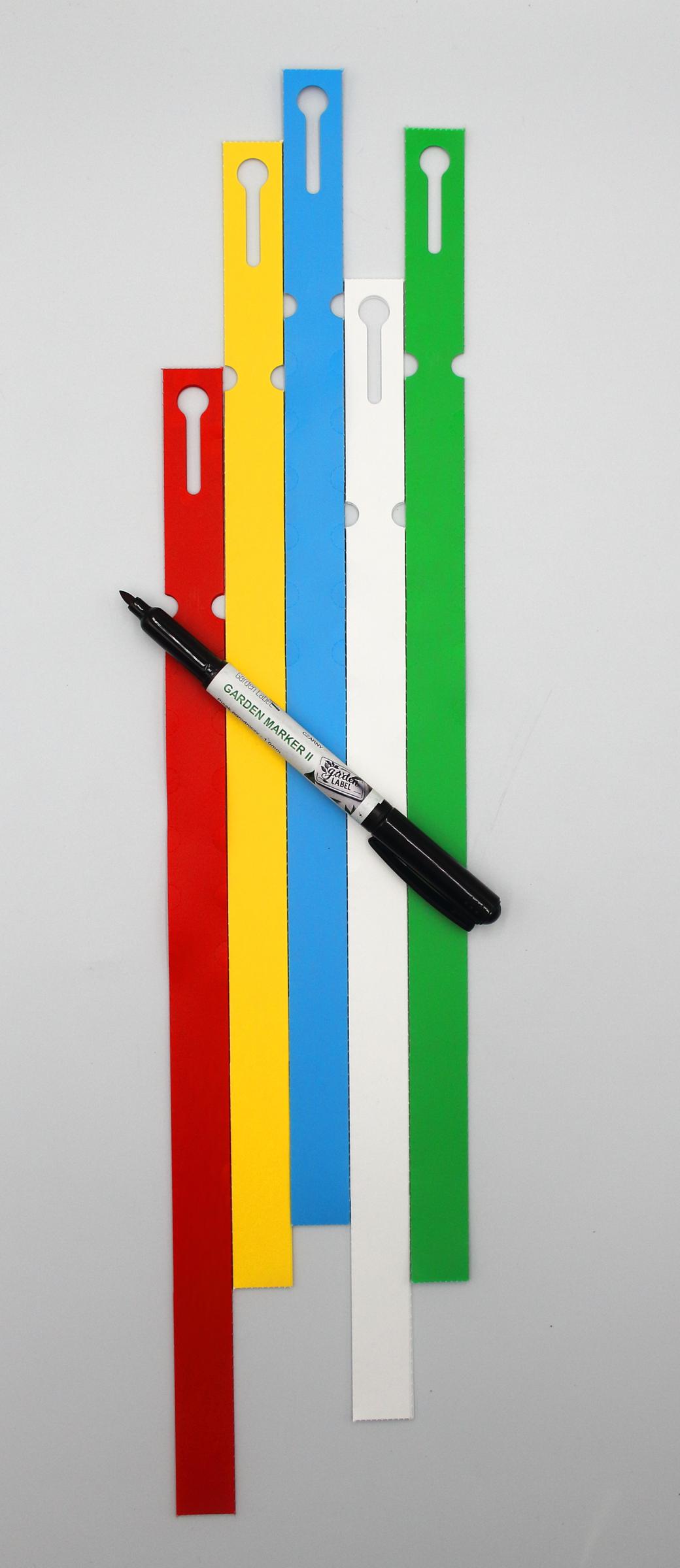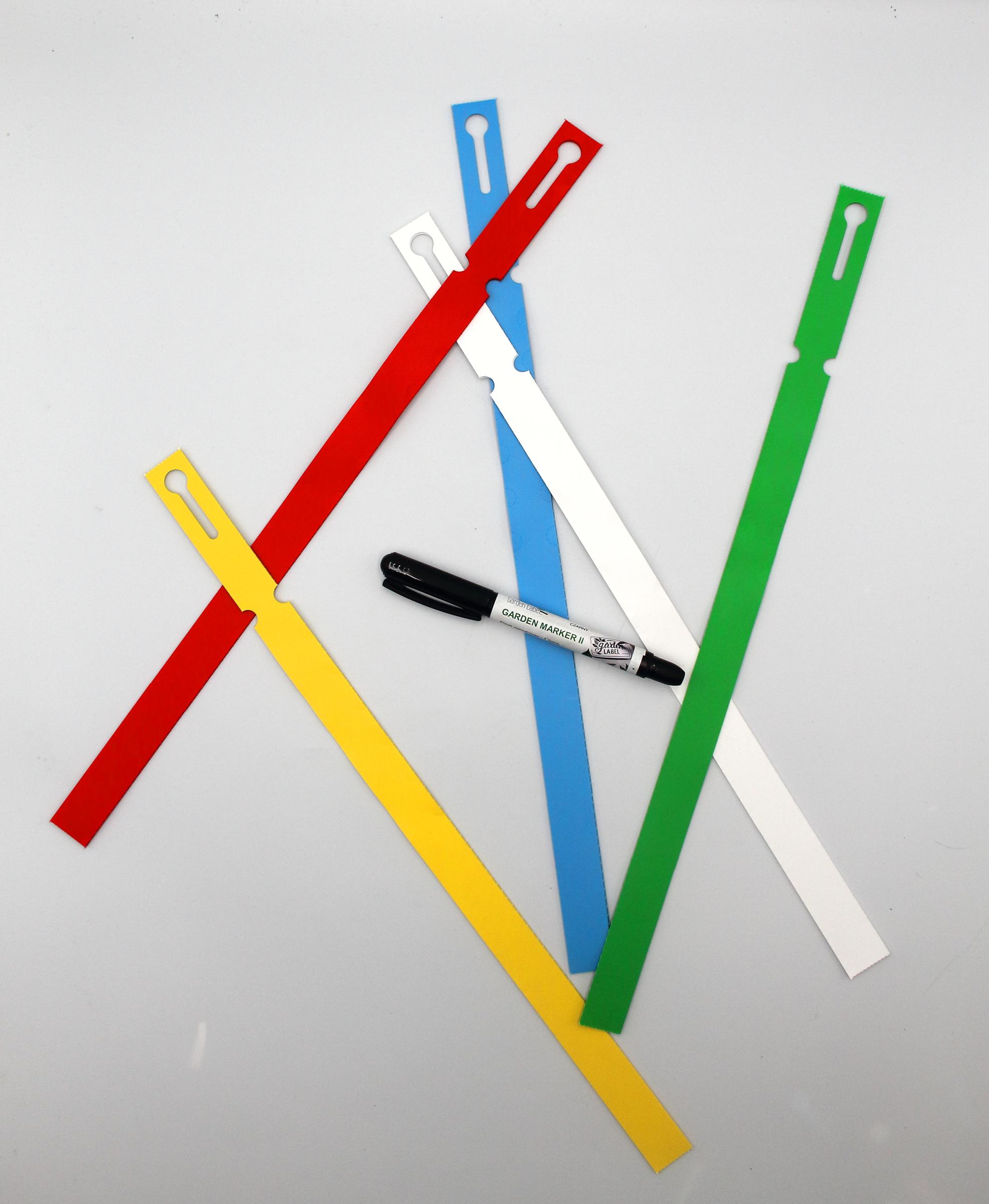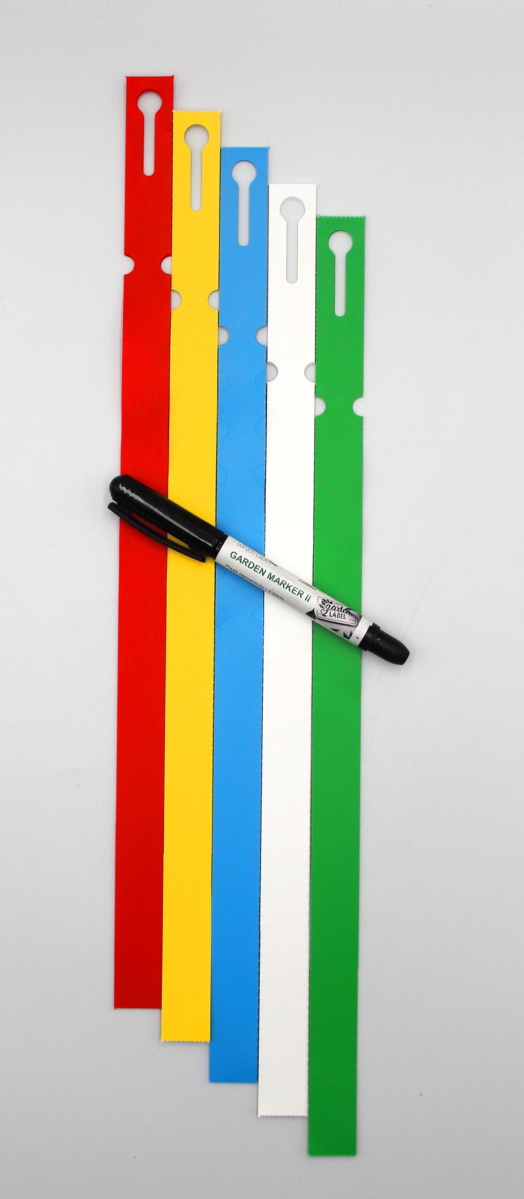 Profesjonalne etykiety ogrodnicze wykonane z trwałego HDPE o wymiarach 400x20mm (20×400), przeznaczone do opisywania markerem permanentnym.