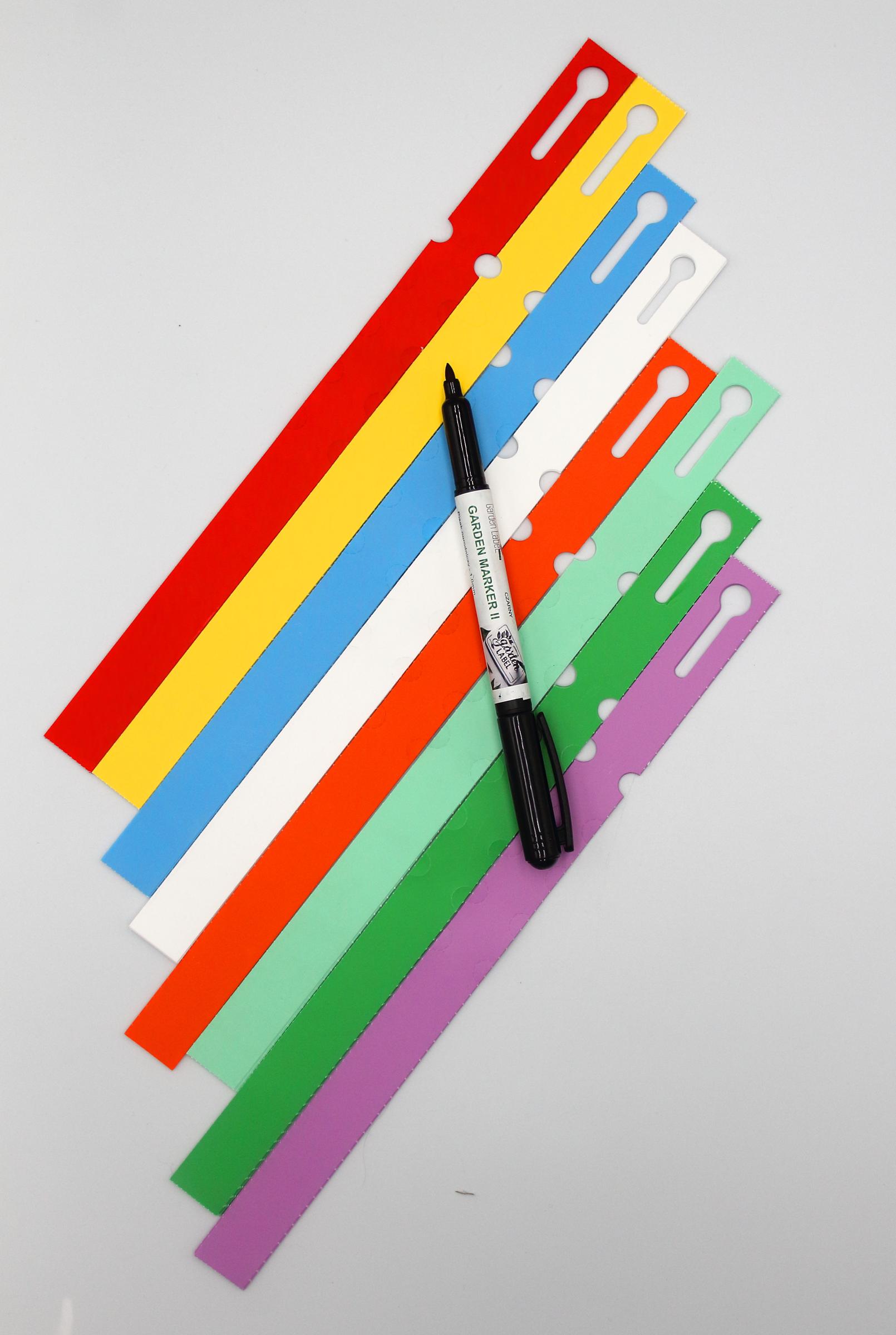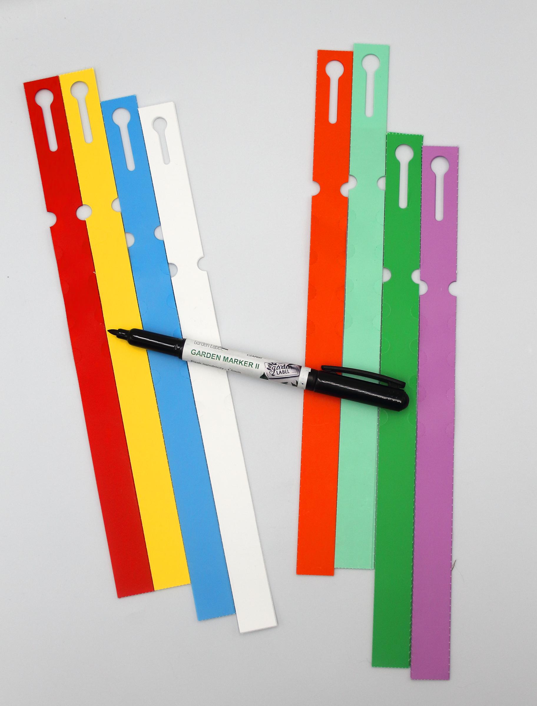 Profesjonalne etykiety ogrodnicze wykonane z trwałego HDPE o wymiarach 300x20mm (20×300), przeznaczone do opisywania markerem permanentnym.