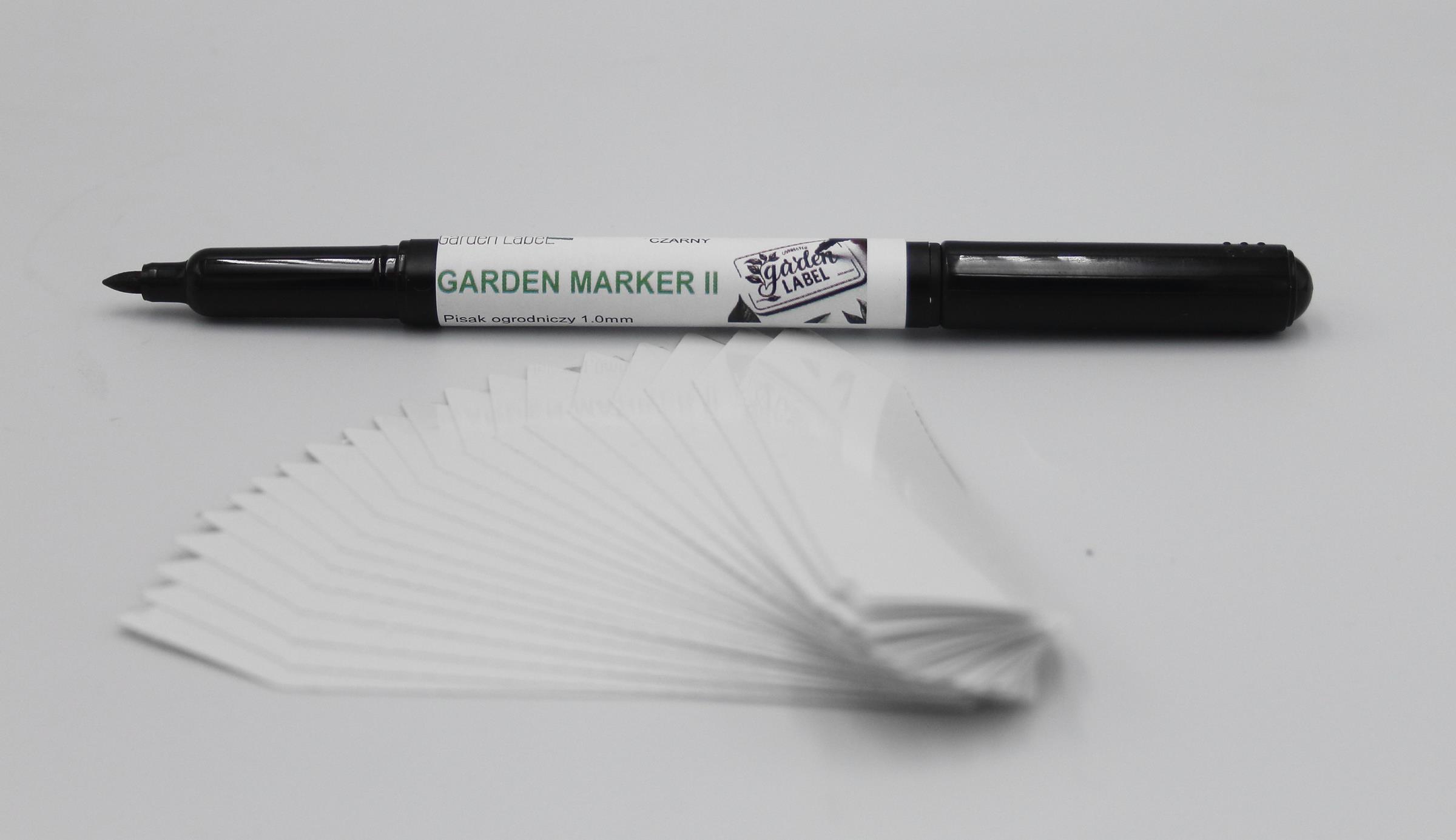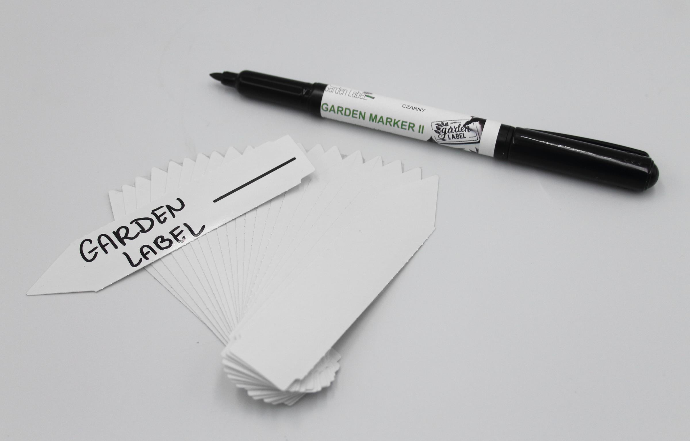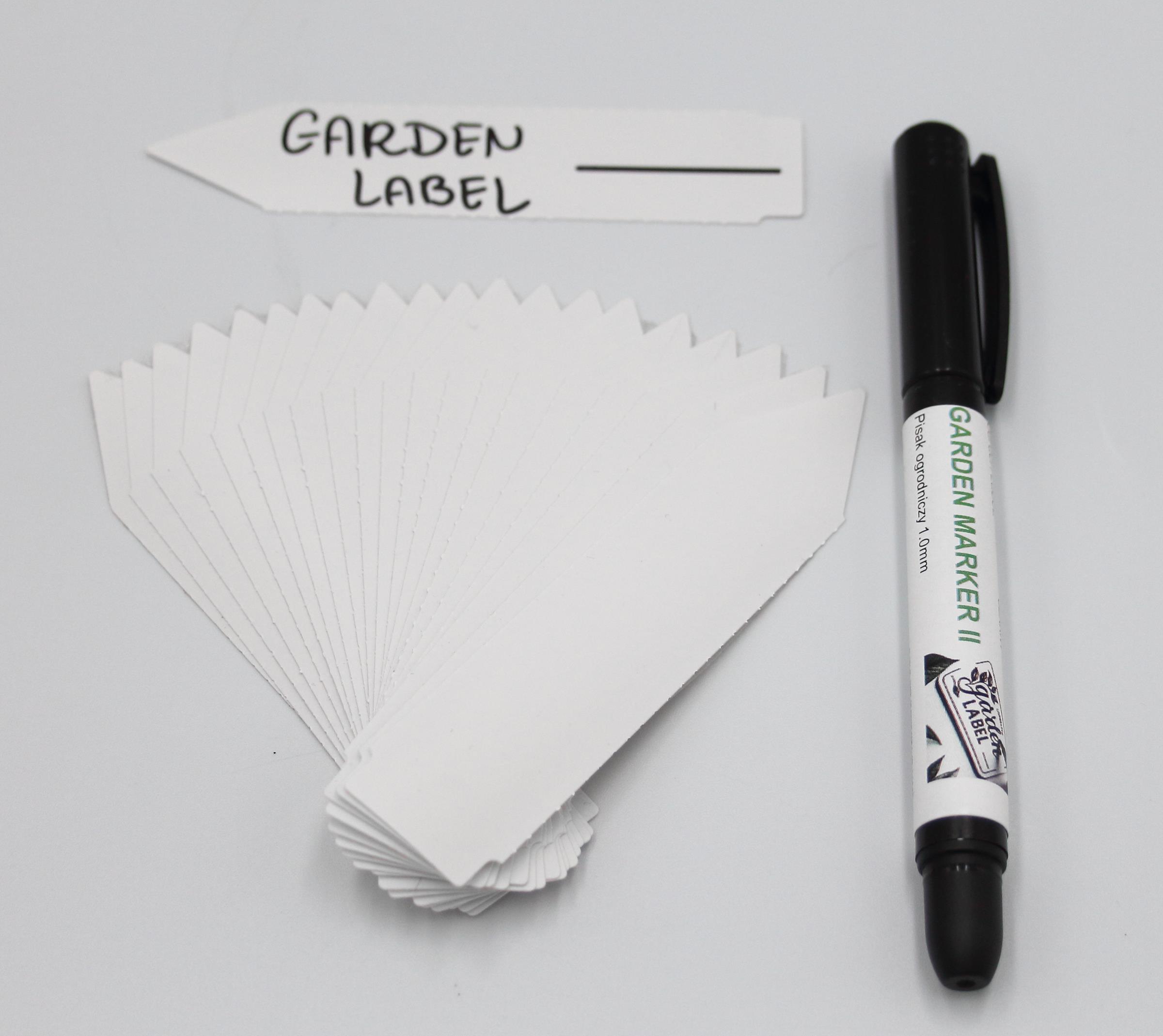 MARKER II + Etykiety ogrodnicze wtykane to niezbędny element każdego ogrodu, szkółki czy uprawy roślinnej. Nasze etykiety o wymiarach 105mm x 23,5mm wykonane są z wytrzymałego materiału PVC, co zapewnia ich długotrwałość i odporność na warunki atmosferyczne. Białe etykiety są idealne do oznaczania zarówno roślin doniczkowych, jak i tych sadzonych w gruncie. Dzięki jednostronnej końcówce w formie strzałki, łatwo możesz je umieścić w ziemi, co jest szczególnie korzystne w przypadku sadzonek w multiplatach.