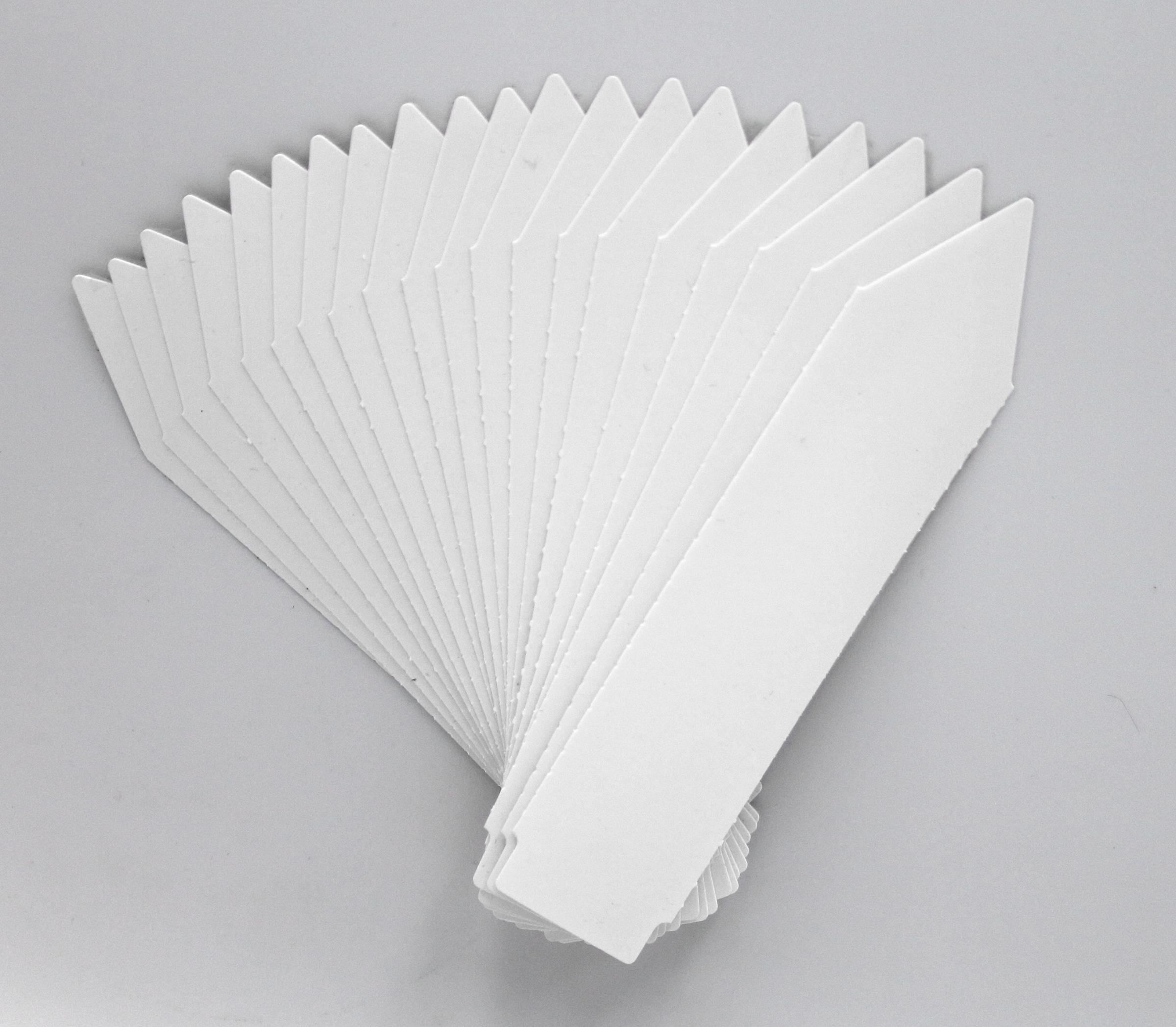 MARKER II + Etykiety ogrodnicze wtykane strzałki w kolorze białym to doskonałe rozwiązanie do oznaczania roślin w każdym ogrodzie, szkółce czy w warunkach rolniczych. Oferowane etykiety mają wymiary 105mm x 23,5mm i są dostępne w opakowaniu zawierającym 100 sztuk. Wykonane z trwałego materiału PVC, charakteryzują się grubością 250 mikronów, co zapewnia ich wysoką odporność na niekorzystne warunki atmosferyczne, takie jak deszcz czy promieniowanie UV. Dzięki temu informacje umieszczone na etykietach pozostaną czytelne przez długi czas.