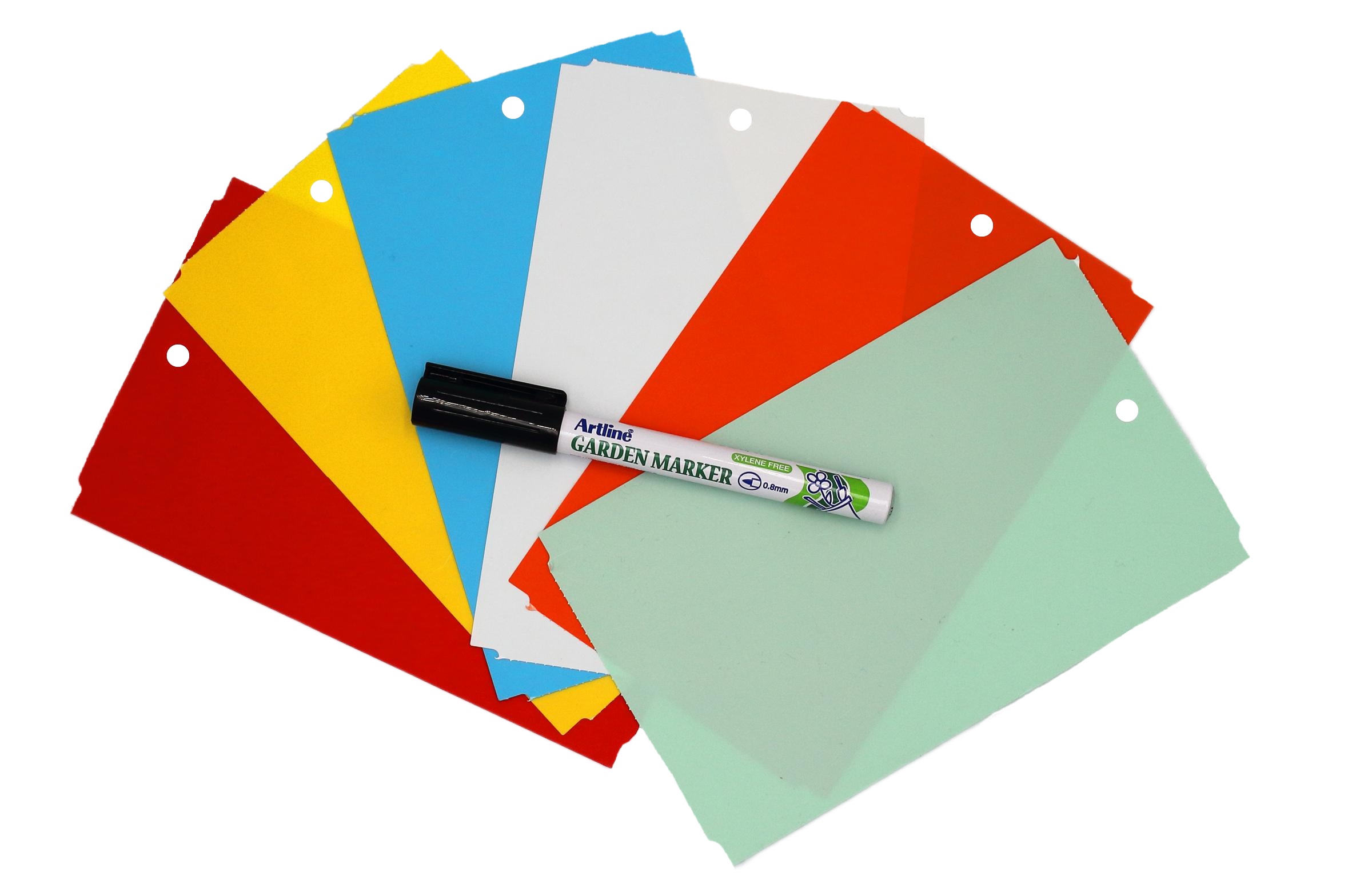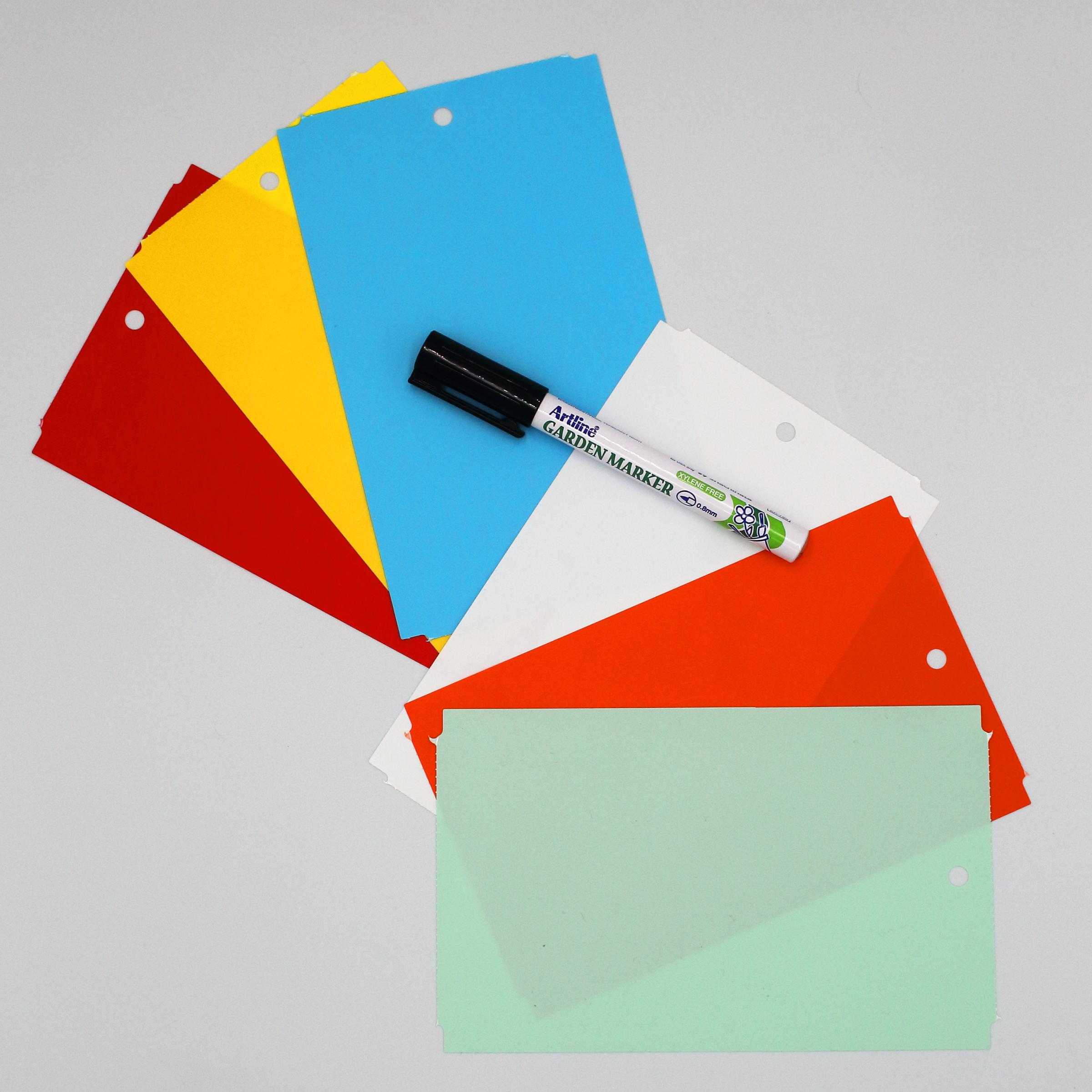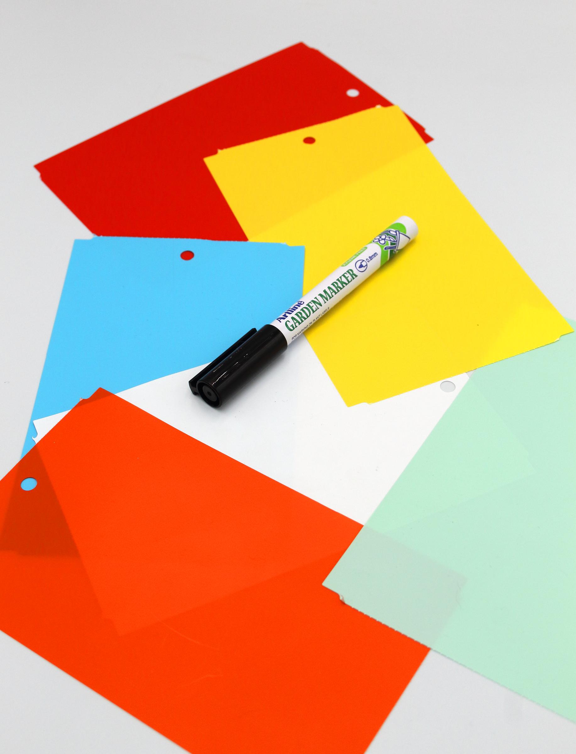 MARKER + Kolorowe zawieszki o wymiarze 163,5x100m do roślin wykonane z trwałego tworzywa HDPE z certyfikatem dopuszczenia do kontaktu z żywnością. To profesjonalne etykiety ogrodnicze przeznaczone do trwałego znakowania roślin w szkółkach, centrach ogrodniczych, gospodarstwach ogrodniczych oraz w uprawach owoców i warzyw.