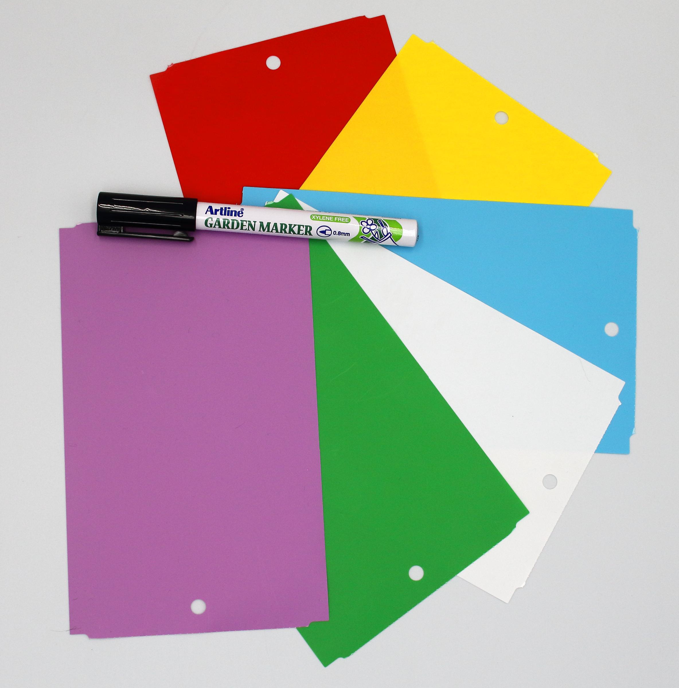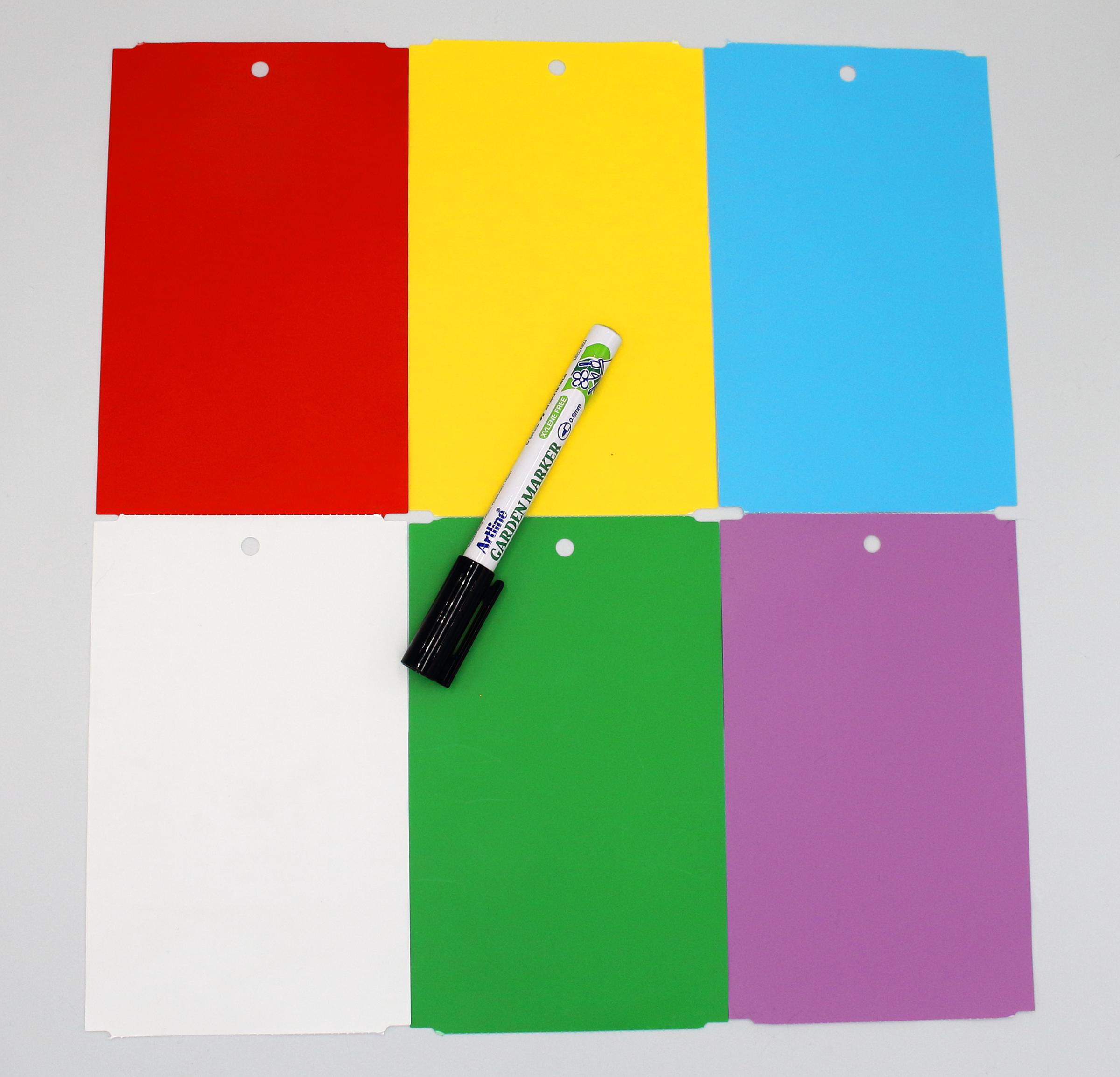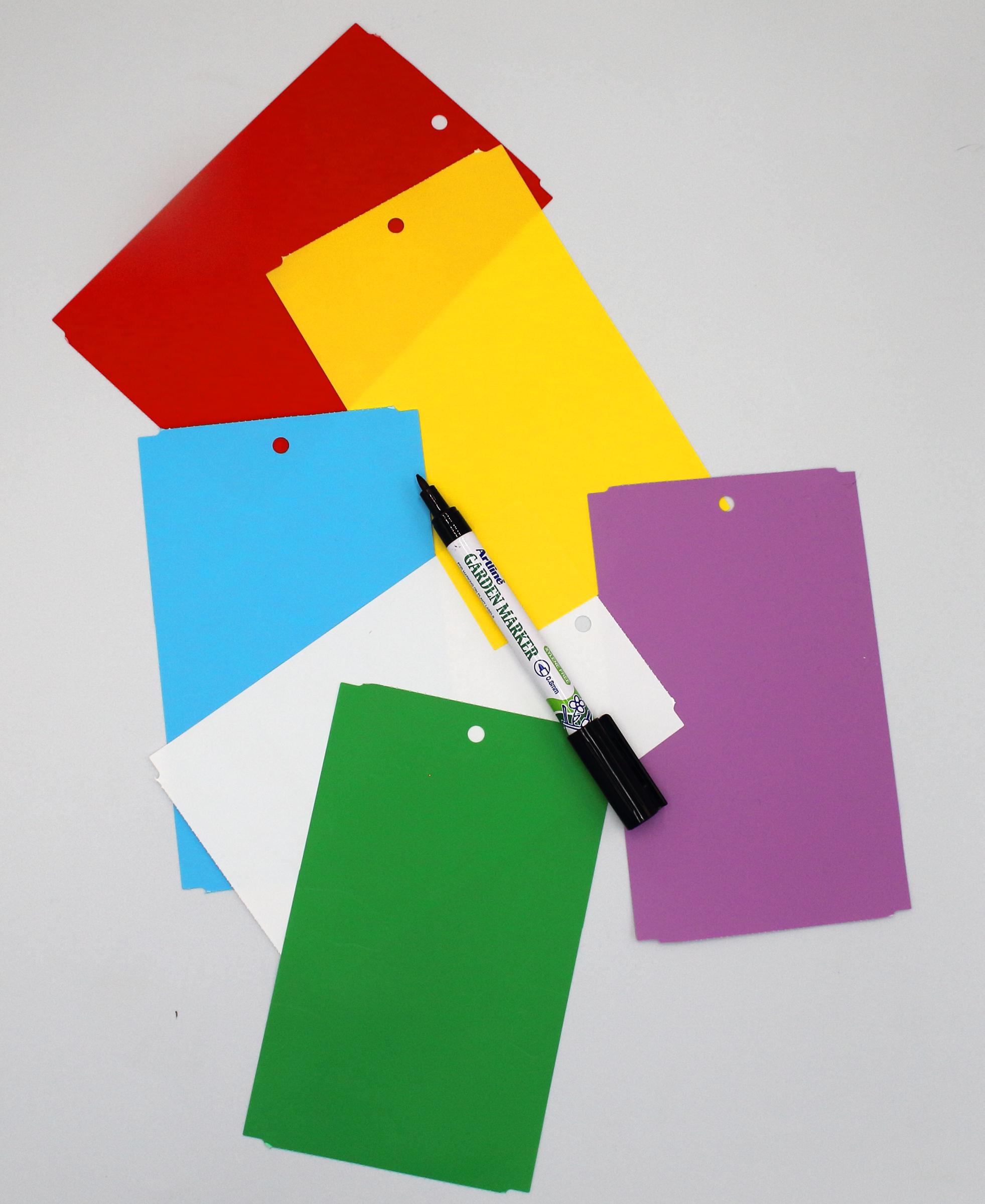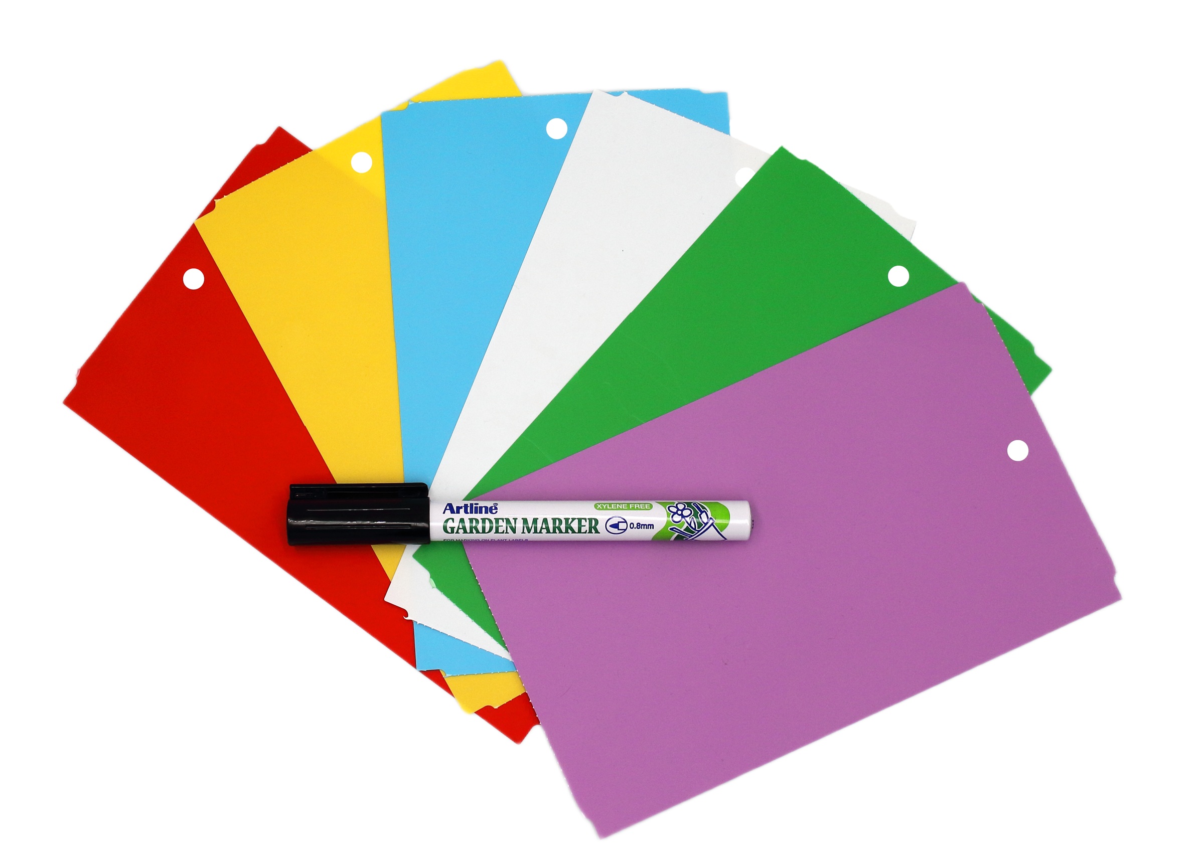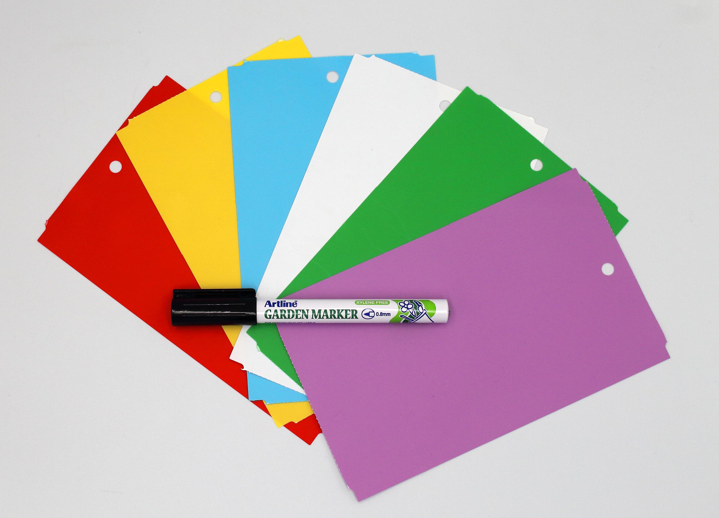 MARKER + Kolorowe zawieszki o wymiarze 163,5x100m do roślin wykonane z trwałego tworzywa HDPE z certyfikatem dopuszczenia do kontaktu z żywnością. To profesjonalne etykiety ogrodnicze przeznaczone do trwałego znakowania roślin w szkółkach, centrach ogrodniczych, gospodarstwach ogrodniczych oraz w uprawach owoców i warzyw.