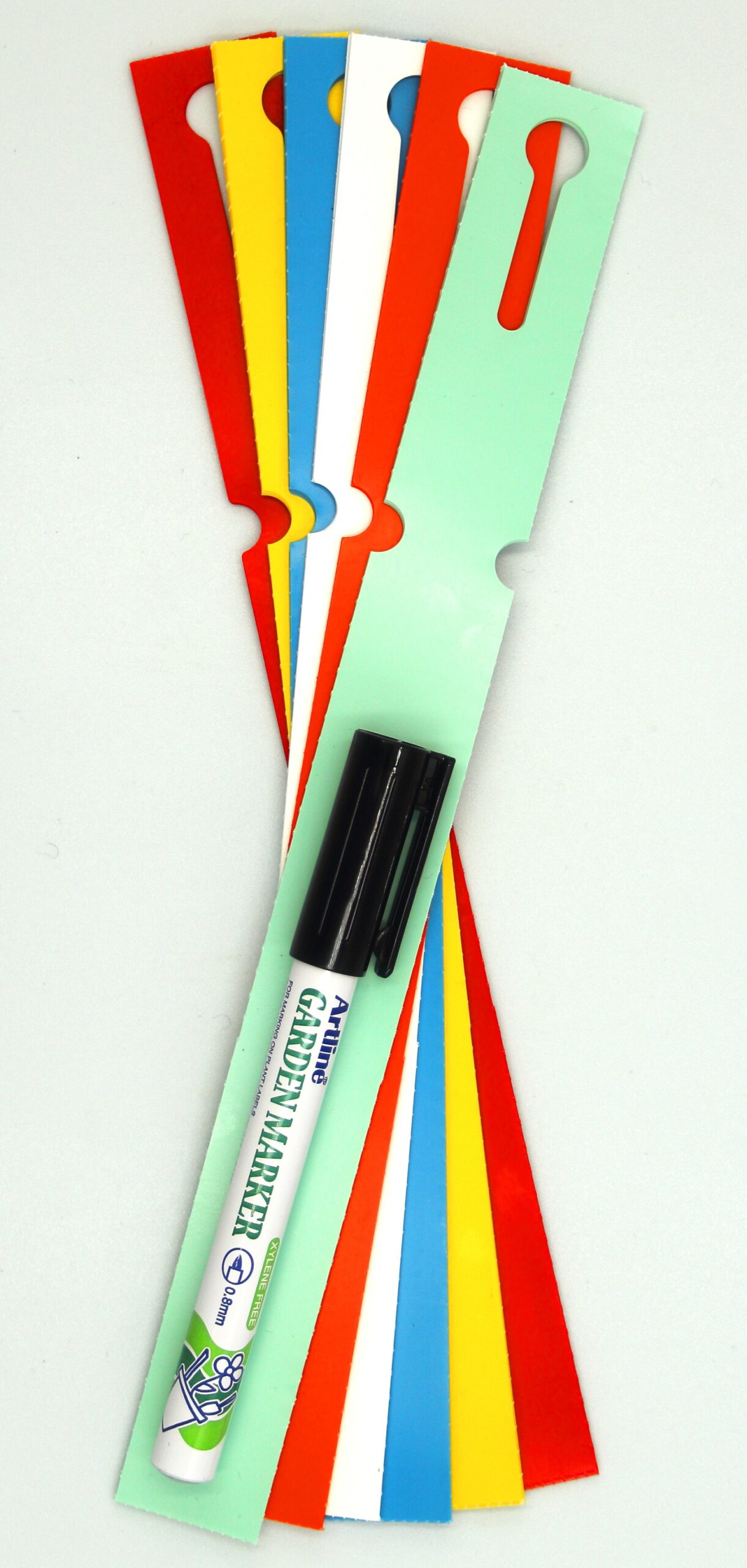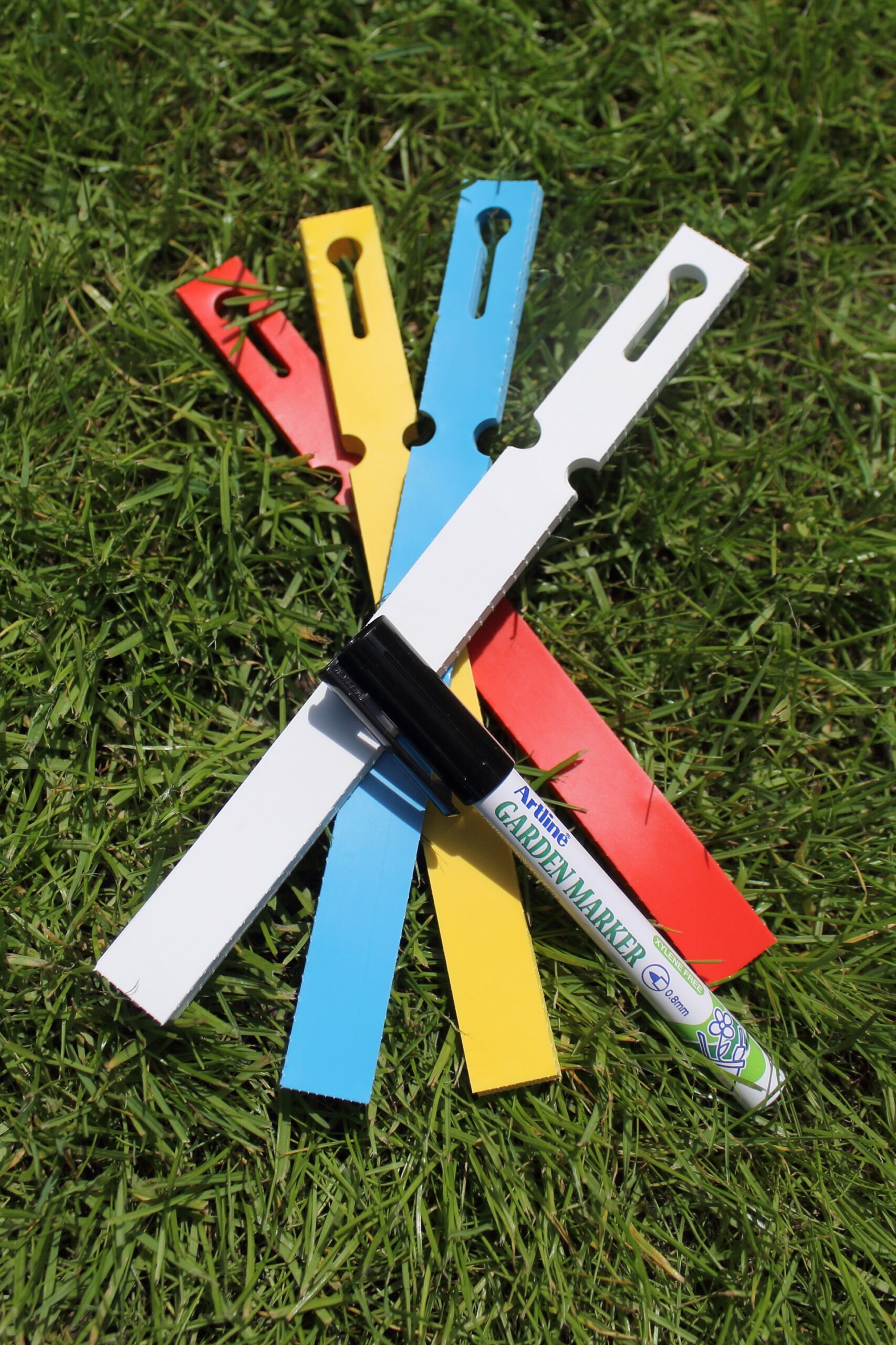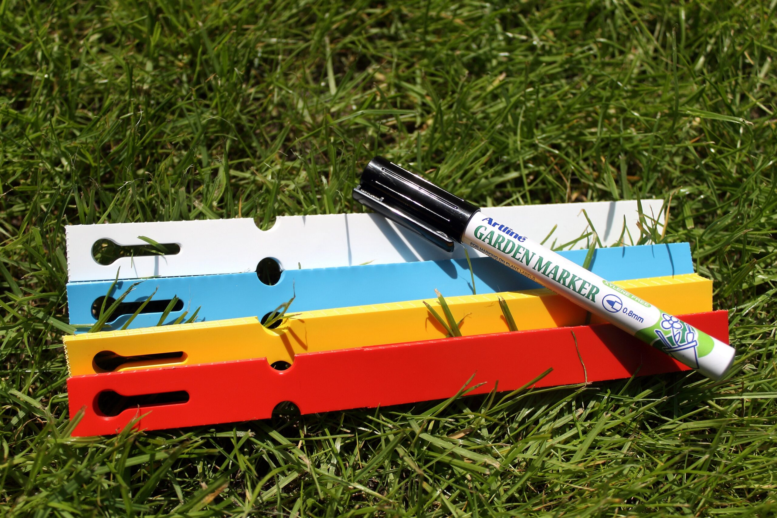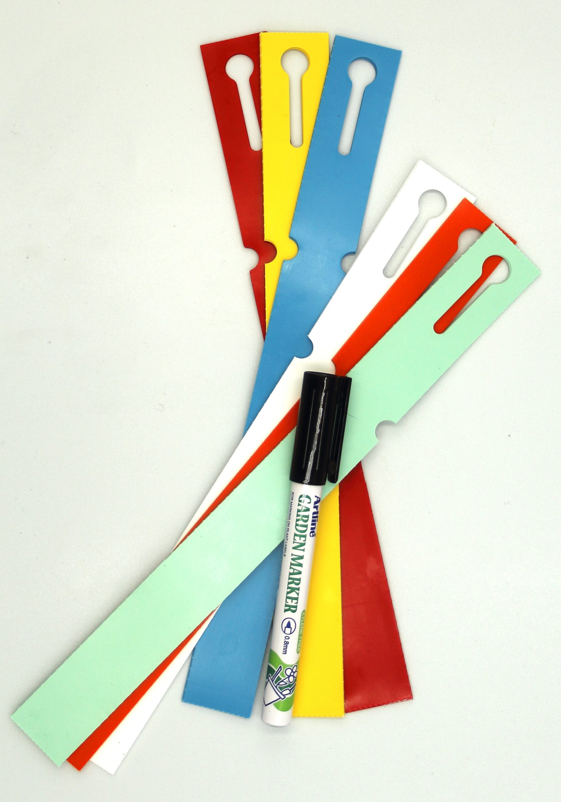Profesjonalne etykiety ogrodnicze wykonane z trwałego HDPE o wymiarach 250x25mm (25×250), przeznaczone do opisywania markerem permanentnym.