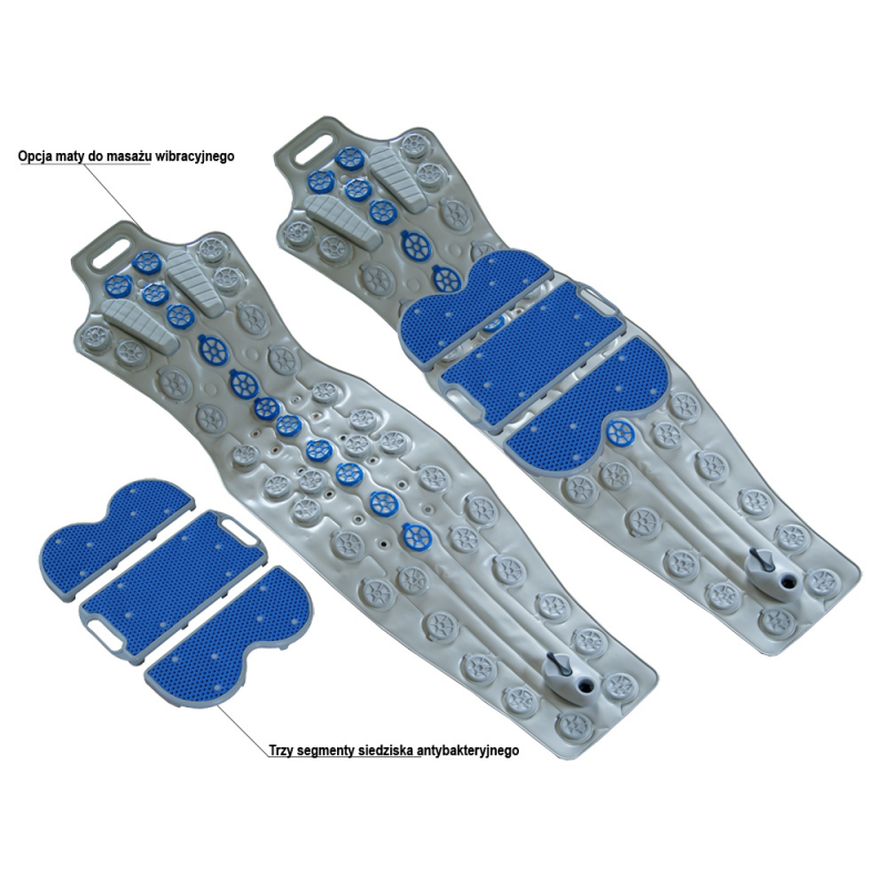 Atutem jest także trójdzielne siedzisko wykonane ze specjalnego miękkiego i antybakteryjnego materiału pozwalającego na dopasowanie maty do indywidualnych wymogów użytkownika.